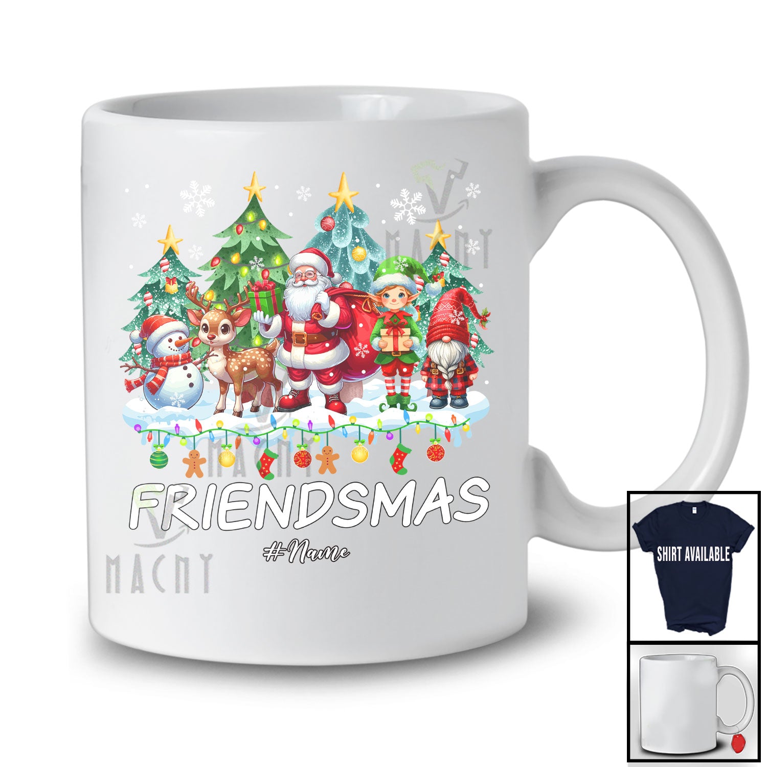 • Personalized Custom Name Friendsmas; Amusing Christmas Snowman Reindeer Santa Elf Squad T-Shirt. This cotton t-shirt is a durable staple product with a classic fit. One of the most popular items, it has a relaxed style made for everyday and casual wear.