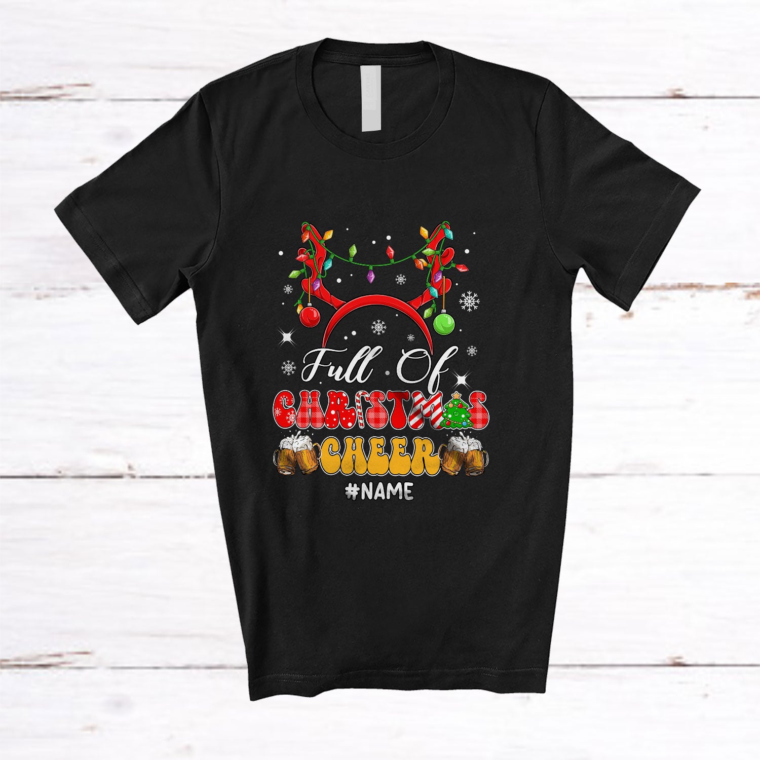 Personalized Custom Name Full Of Christmas Cheer; Joyful Beer Drinking X-mas Lights Couple Family T-Shirt
