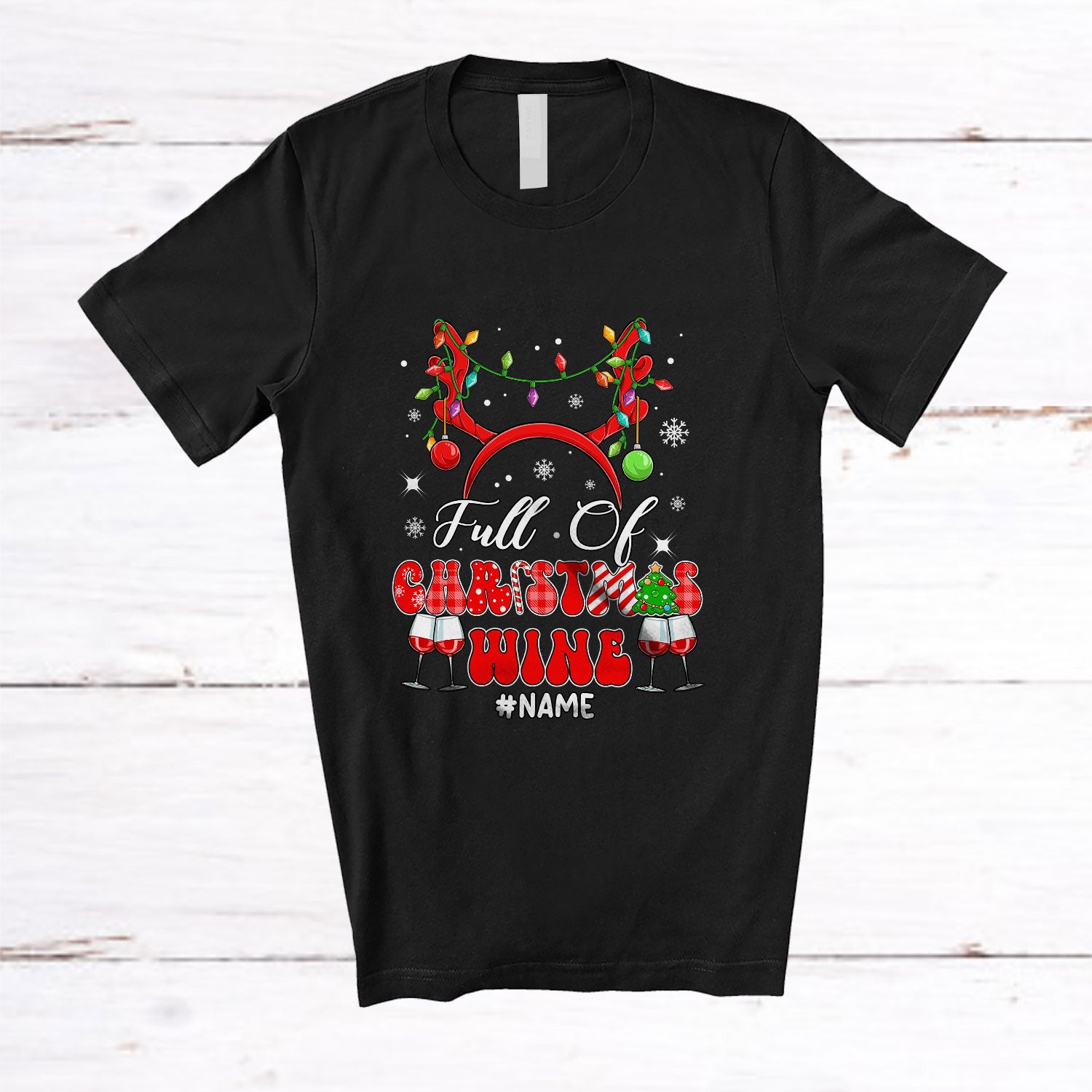Personalized Custom Name Full Of Christmas Wine; Joyful Drinking X-mas Lights Couple Family T-Shirt
