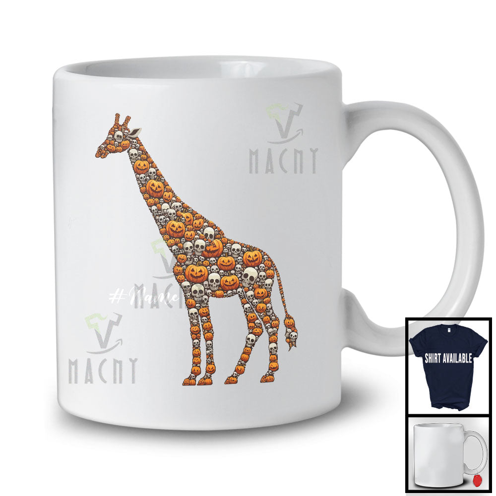 Personalized Custom Name Giraffe Skull Pumpkin Shape; Creepy Halloween Animal Lover T-Shirt