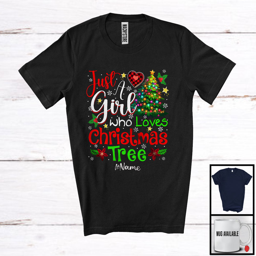 Personalized Custom Name Girl Loves Christmas Tree; Fantastic Christmas Lights Tree; Snowing T-Shirt