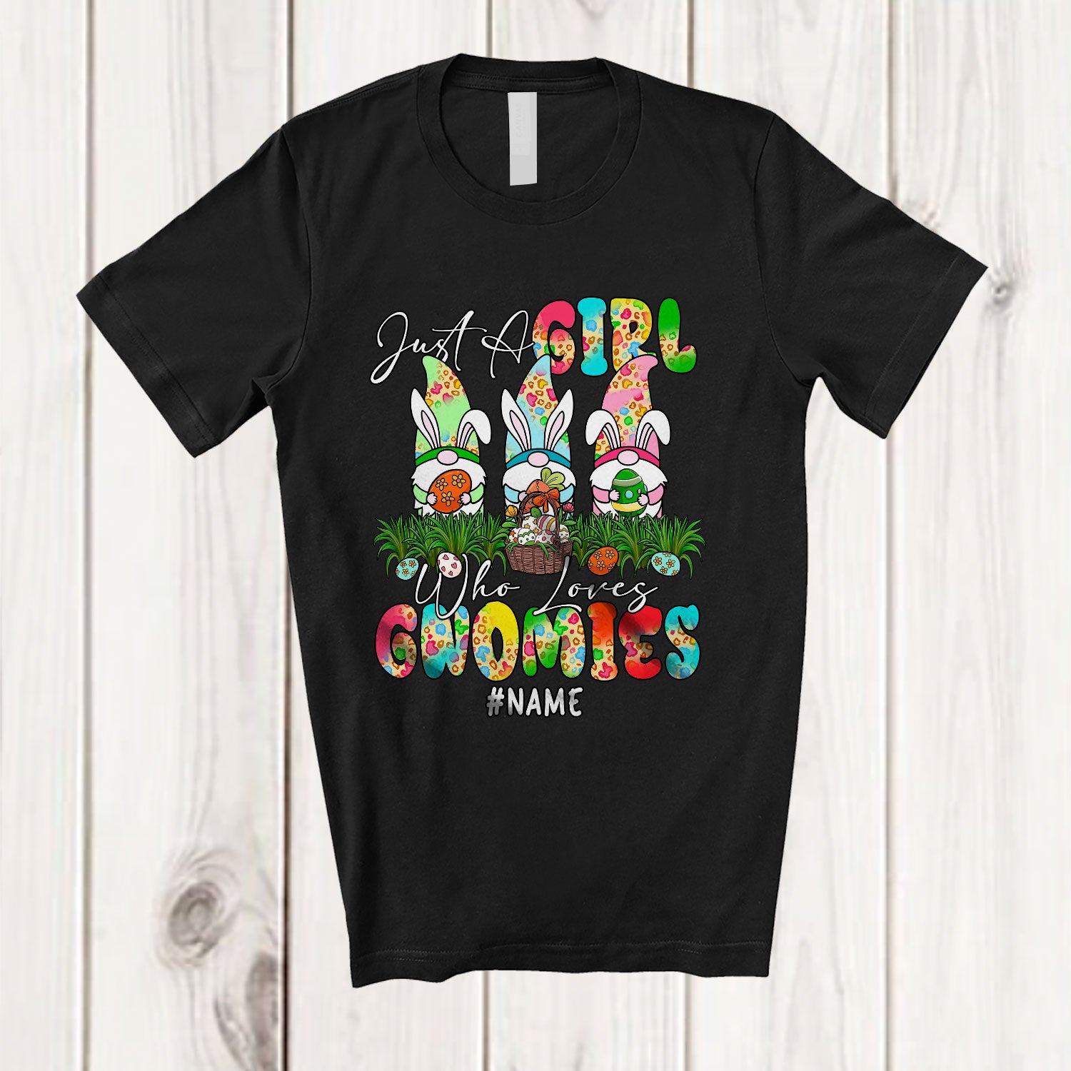Personalized Custom Name Girl Who Loves Gnomies; Amazing Easter Three Bunny Gnomes; Leopard T-Shirt
