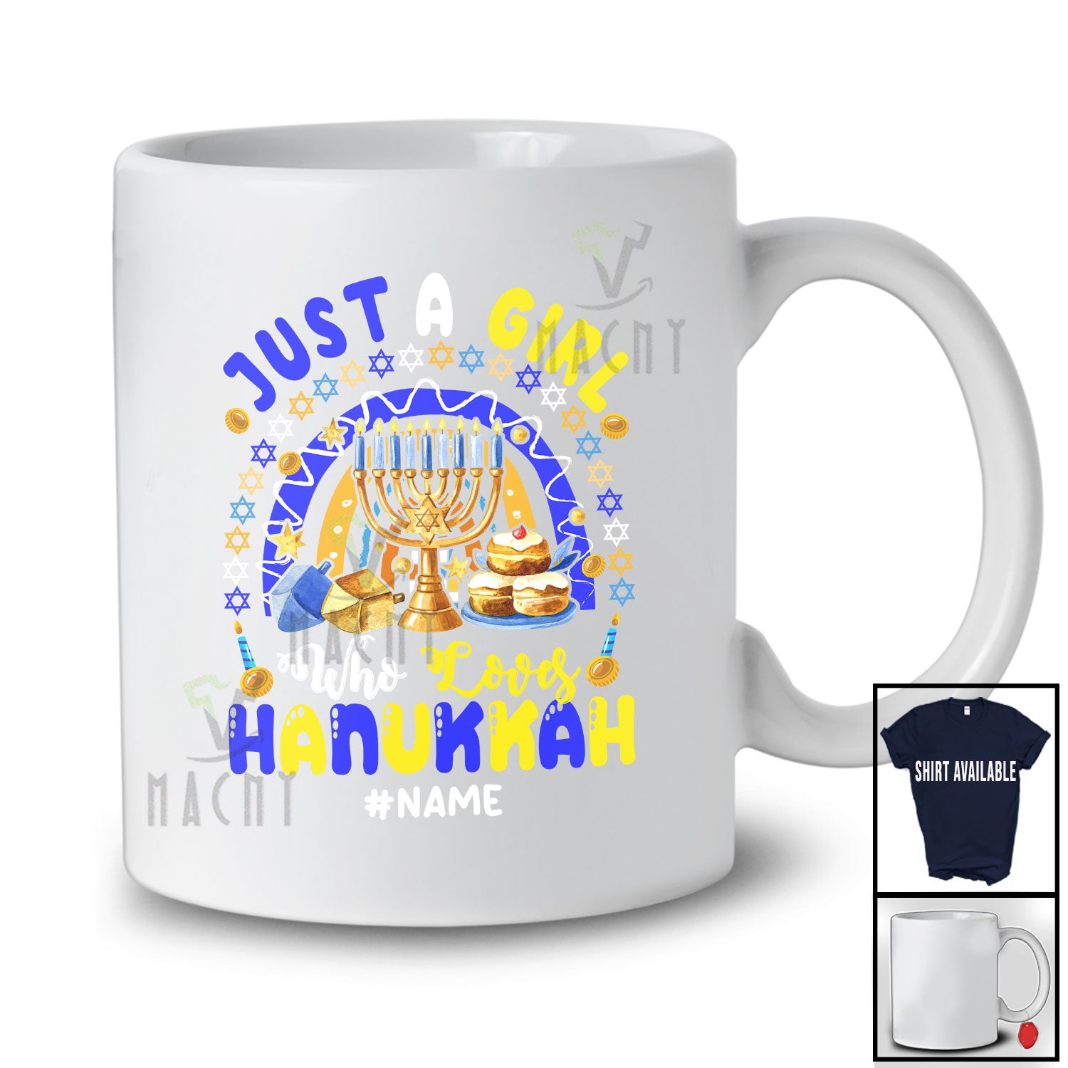 Personalized Custom Name Girl Who Loves Hanukkah; Lovely Lights Leopard Rainbow; Family T-Shirt. This cotton t-shirt is a durable staple product with a classic fit. One of the most popular items, it has a relaxed style made for everyday and casual wear.