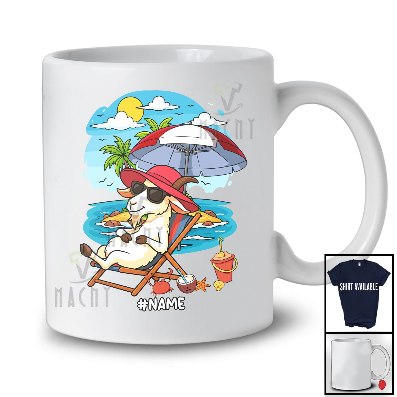 • Personalized Custom Name Goat On Beach; Lovely Summer Vacation Palm Tree; Hawaiian Family T-Shirt. This cotton t-shirt is a durable staple product with a classic fit. One of the most popular items, it has a relaxed style made for everyday and casual wear.
