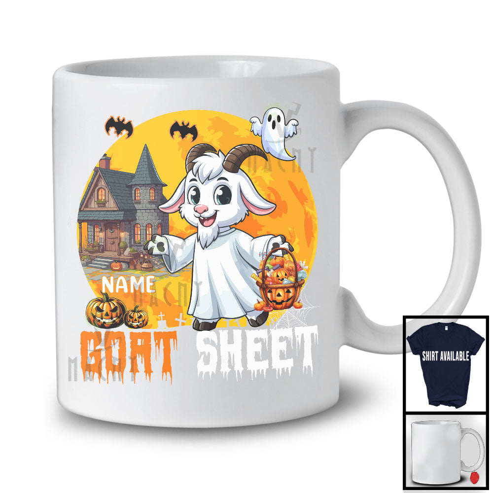 new MacnyStore - Personalized Custom Name Goat Sheet, Adorable Halloween Moon Boo Ghost Goat Lover T-Shirt – Macnystore