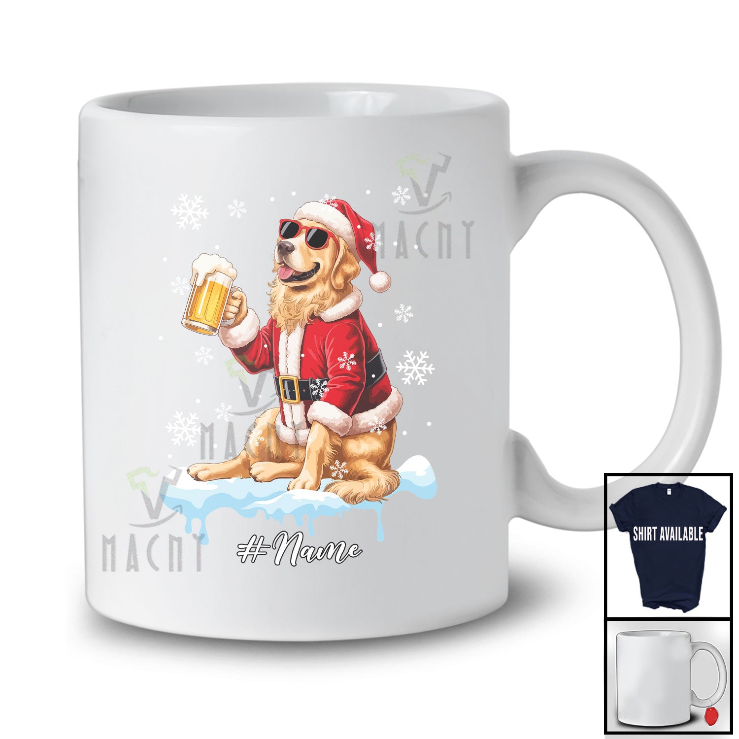 Personalized Custom Name Golden Retriever Santa Drinking Beer; Joyful Christmas Drunker Family T-Shirt