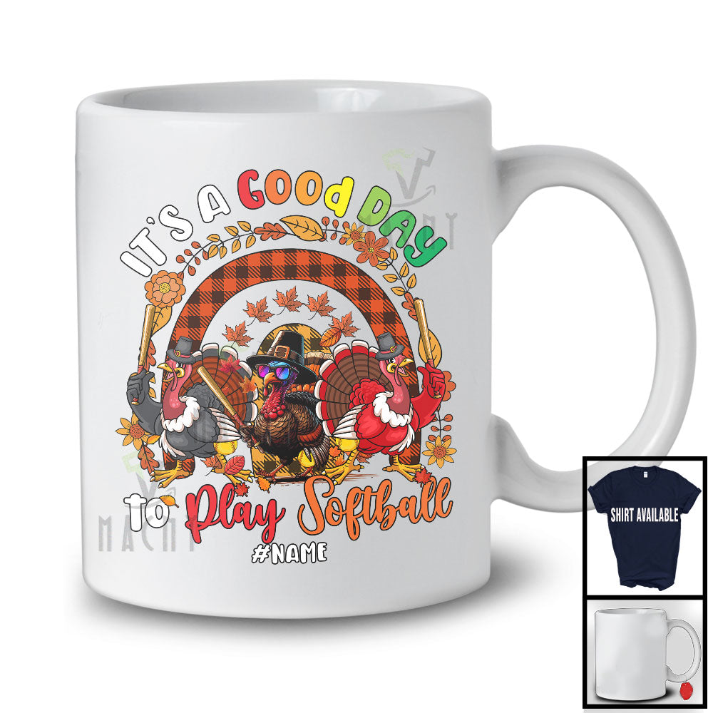 • The Personalized Custom Name Good Day To Play Softball; Joyful Thanksgiving Three Turkeys Rainbow T-Shirt is the yin, to your yang. You've found what you're looking for.