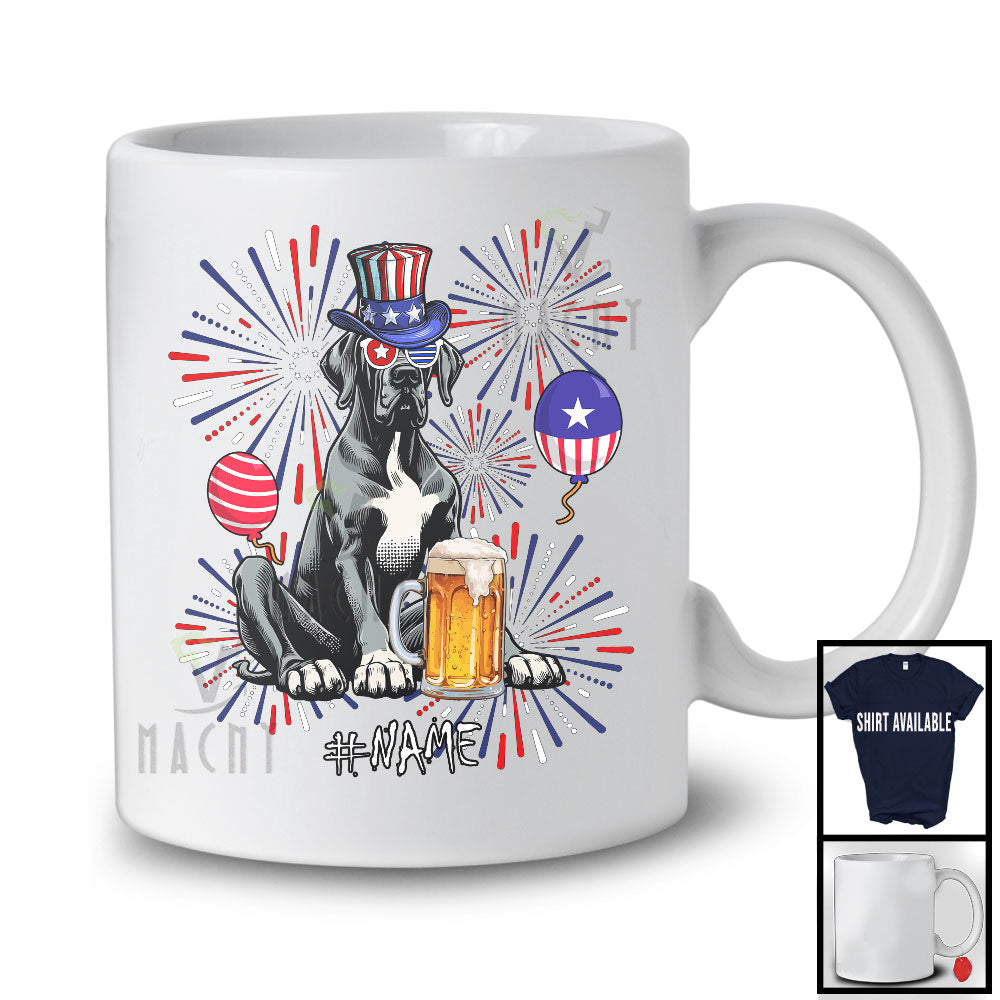 Personalized Custom Name Great Dane Drinking Beer, Lovely 4th Of July Fireworks, Patriotic T-Shirt