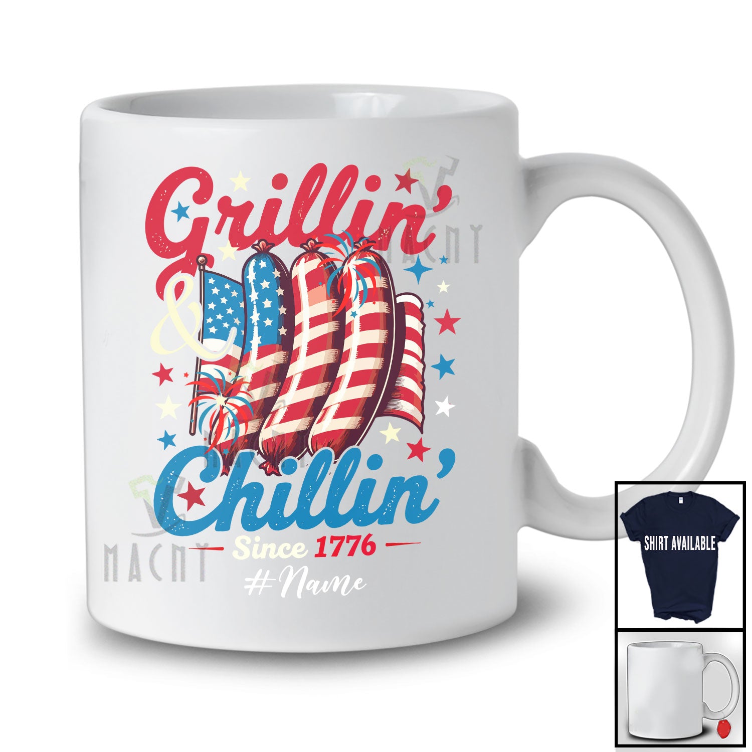 The Personalized Custom Name Grillin' and Chillin' 1776; Humorous 4th of July Sausage Food; Patriotic T-Shirt is the product you didn't think you need, but once you have it, something you won't want to live without.