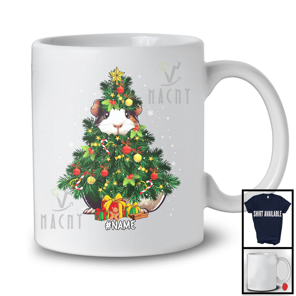 Personalized Custom Name Guinea Pig Christmas Tree Cosplay; Joyful Guinea Pig Animal; Snowing T-Shirt