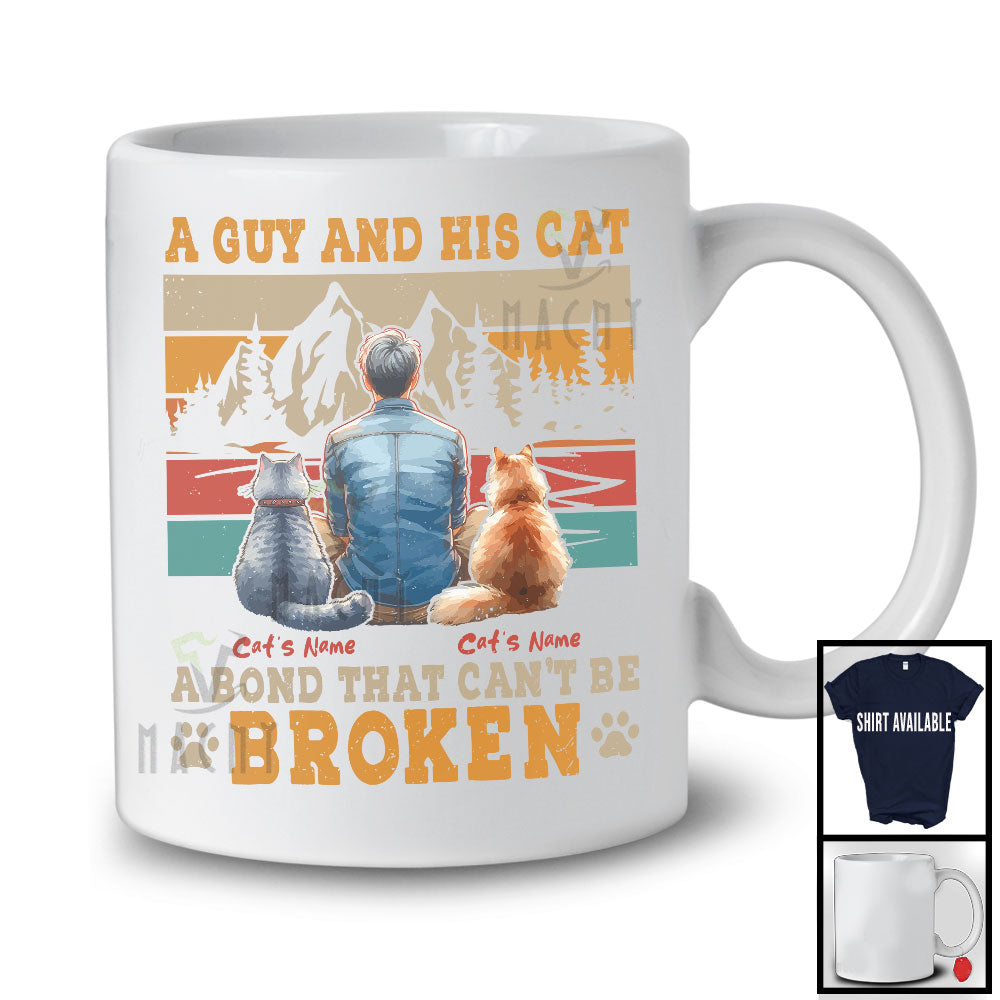 This Personalized Custom Name Guy And His Cat Bond Can't Be Broken, Cute Father's Day 2 Kittens Owner T-Shirt is great idea gift for your family, friends in this birthday, christmas, mother's day, father's day, patrick's day or any holiday.