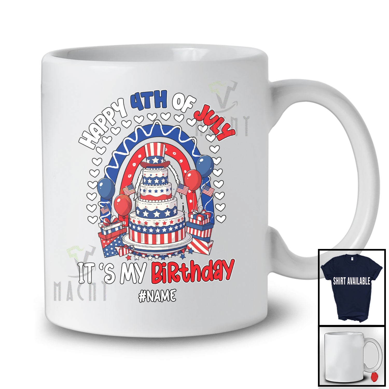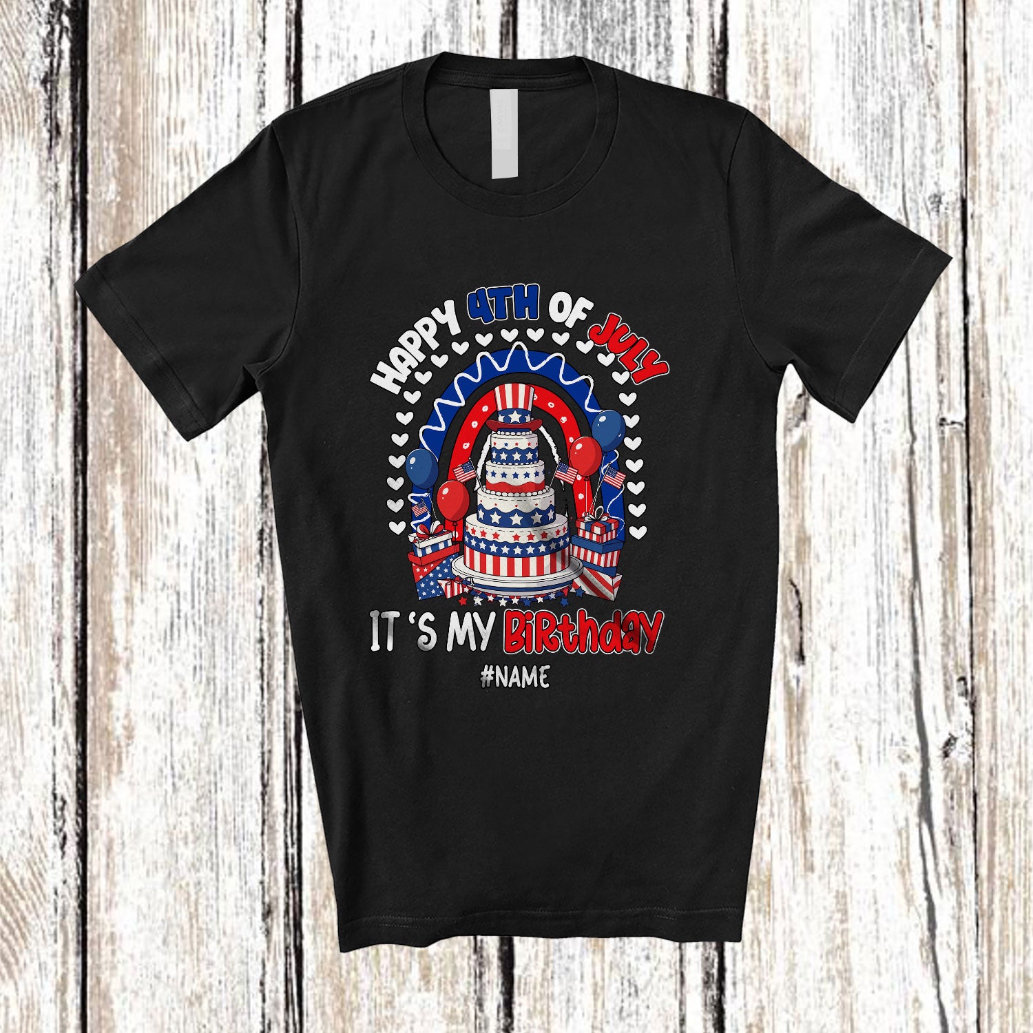 Personalized Custom Name Happy 4th of July My Birthday; Joyful Rainbow Cake Patriotic T-Shirt