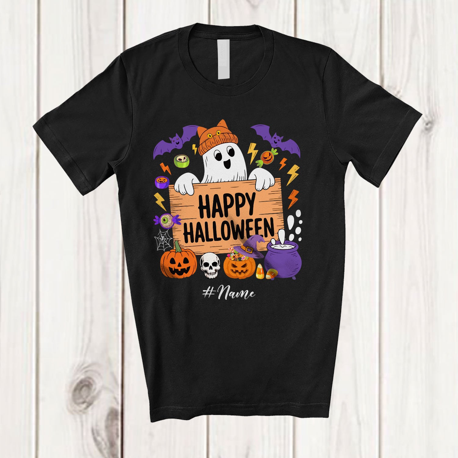 Personalized Custom Name Happy Halloween; Adorable Boo Ghost; Boys Couple Family T-Shirt