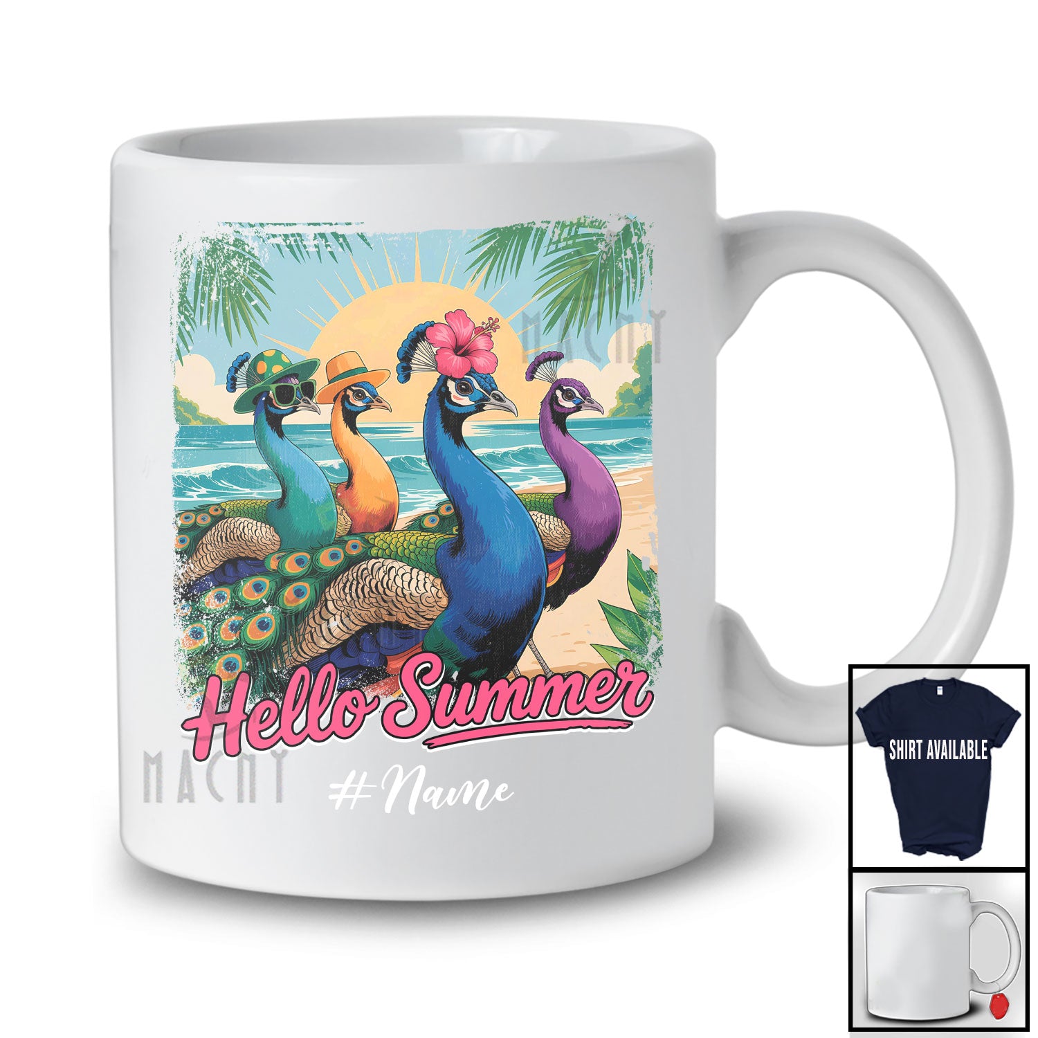 Personalized Custom Name Hello Summer; Lovely Summer Vacation Four Hawaiian Peacock; Beach T-Shirt