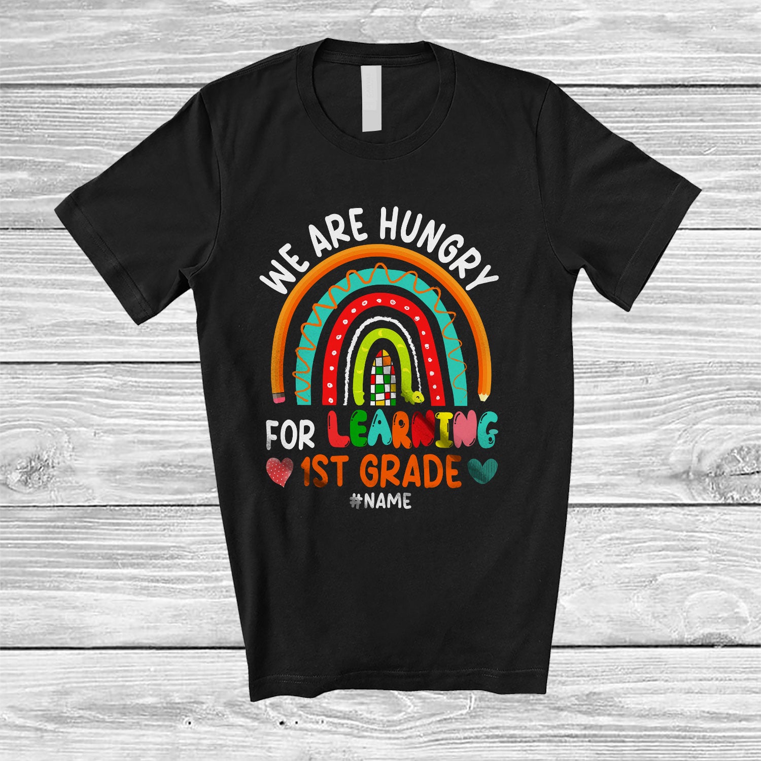 Personalized Custom Name Hungry For Learning 1st Grade; Amusing Back To School Rainbow T-Shirt
