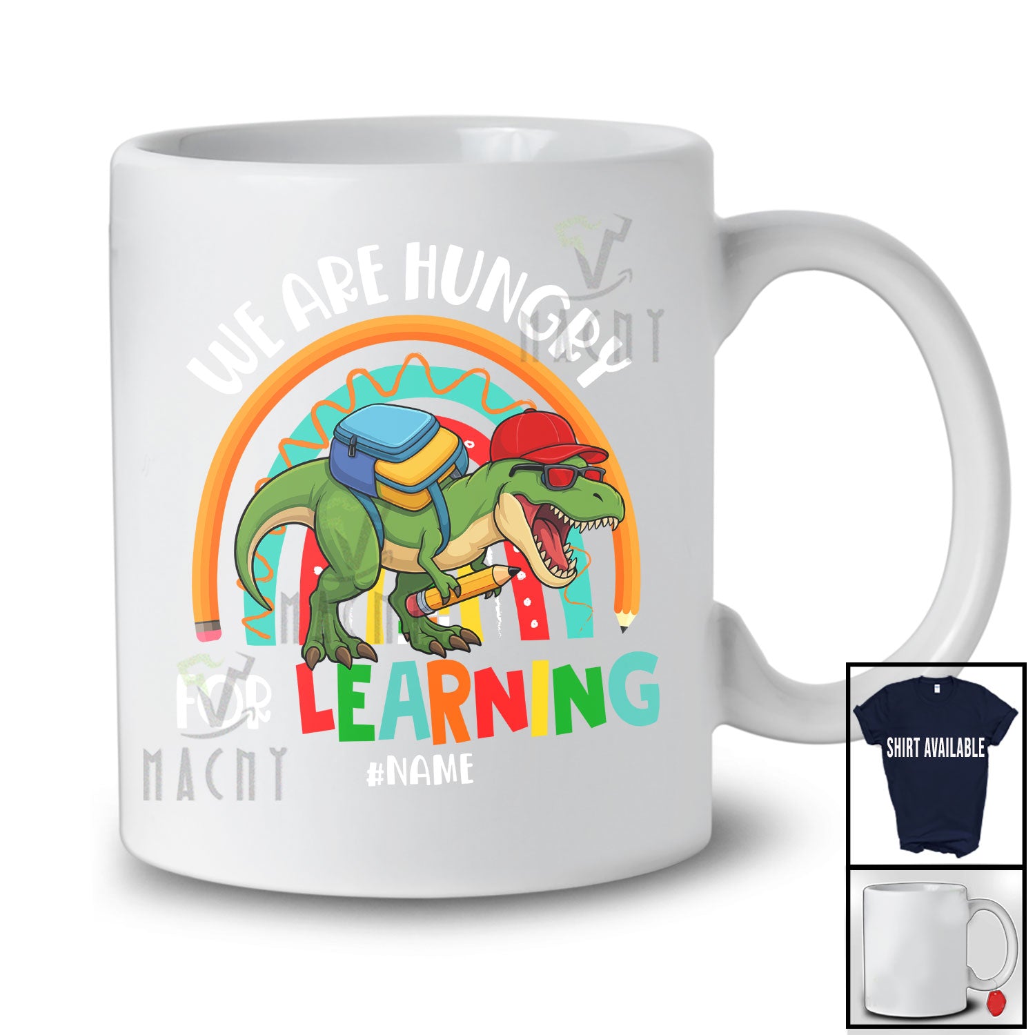 This Personalized Custom Name Hungry For Learning; Amusing Back To School T-Rex Rainbow T-Shirt is great idea gift for your family, friends in this birthday, christmas, mother's day, father's day, patrick's day or any holiday.