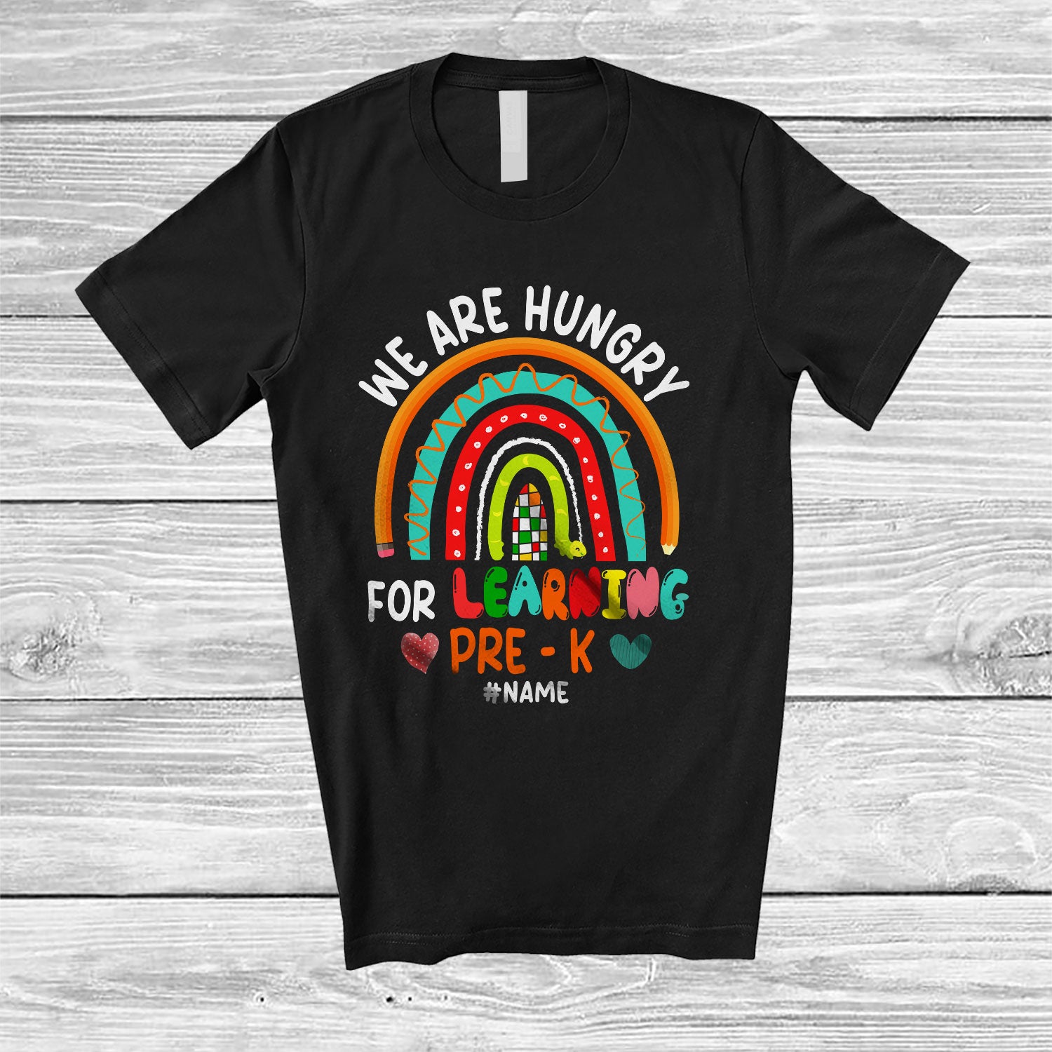 Personalized Custom Name Hungry For Learning Pre-K; Amusing Back To School Rainbow T-Shirt