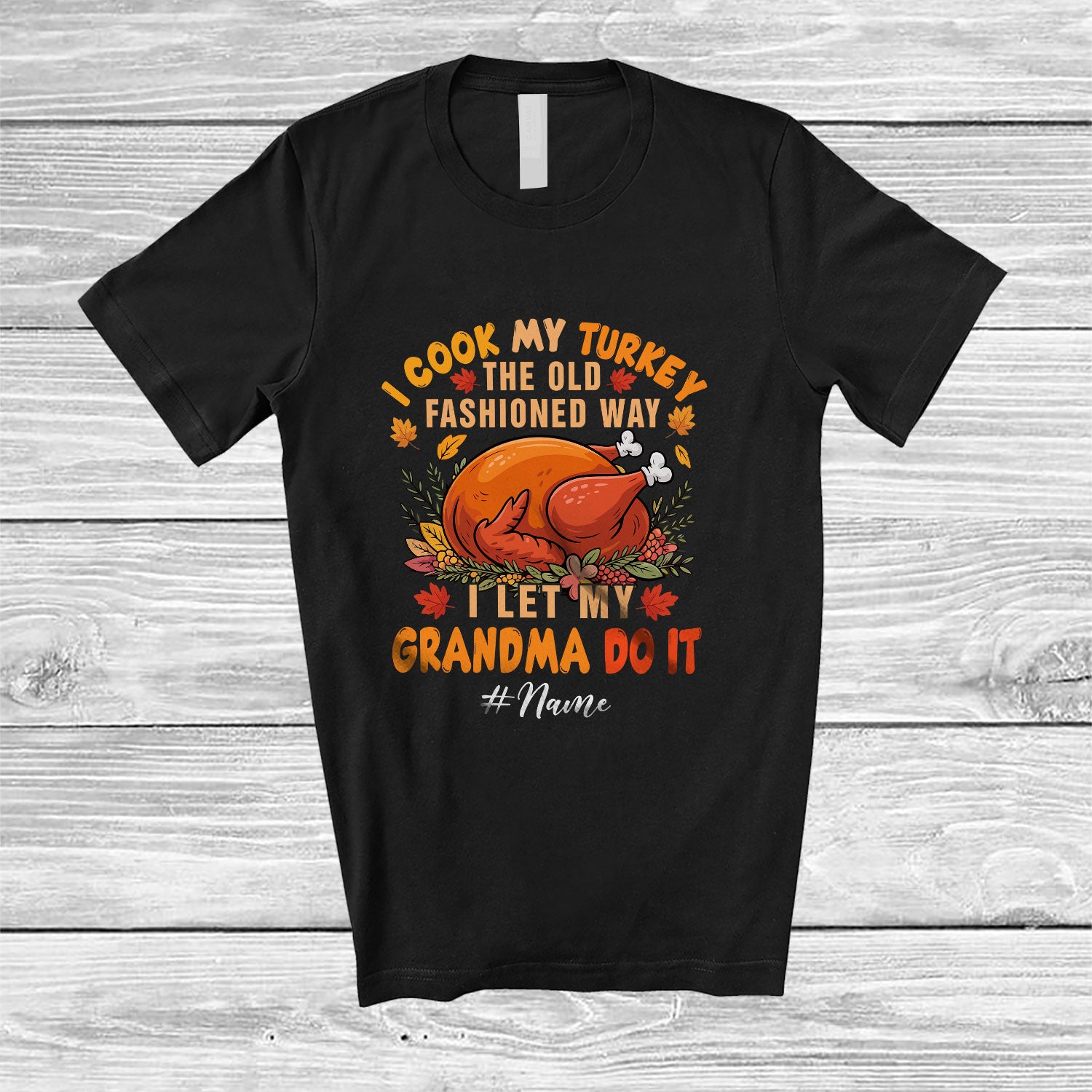 new MacnyStore - Personalized Custom Name I Cook My Turkey Old Fashioned Way; Joyful Thanksgiving Grandma Family T-Shirt – Macnystore