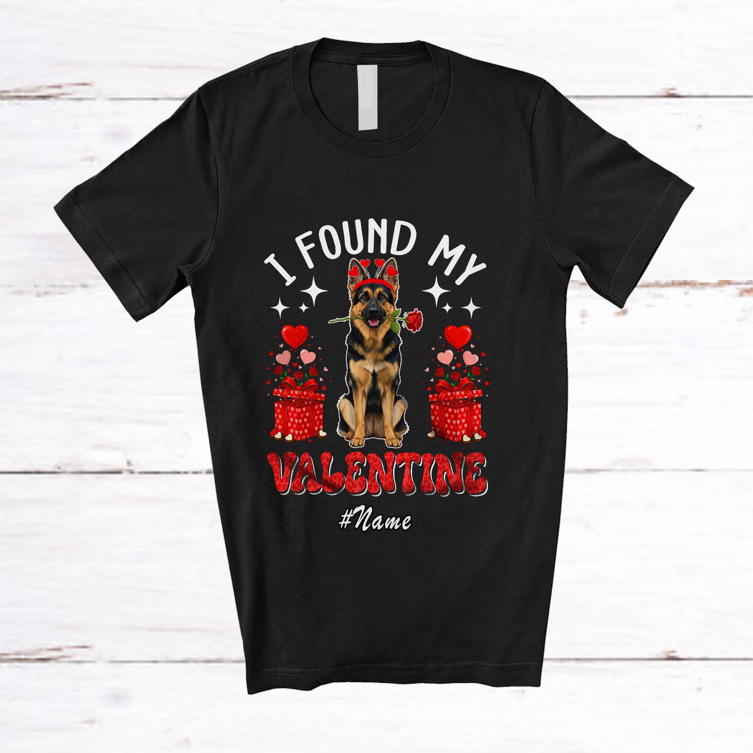 Personalized Custom Name I Found My Valentine; Adorable German Shepherd Owner Flower Hearts T-Shirt