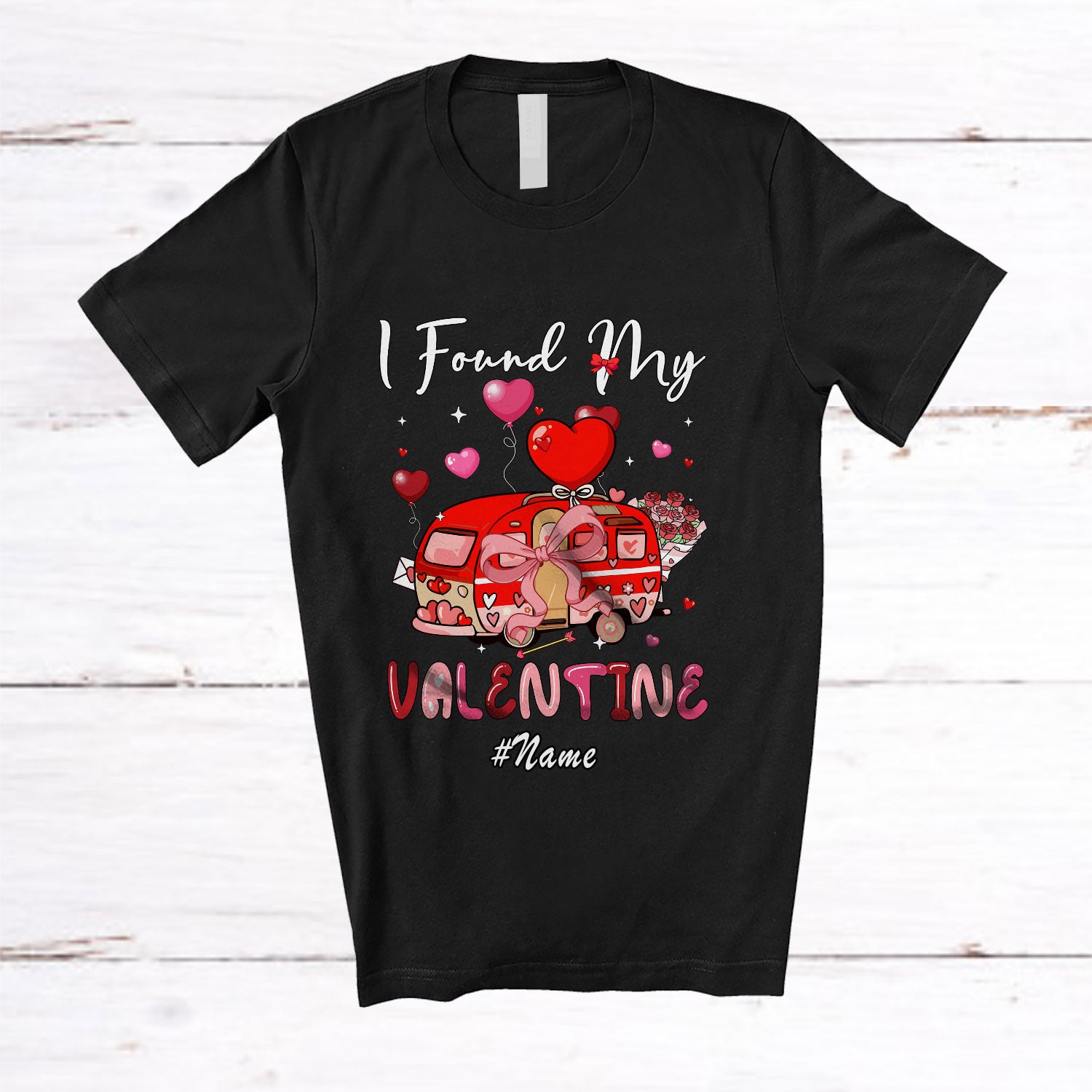 Personalized Custom Name I Found My Valentine; Joyful Camping Lover Groovy Hearts T-Shirt