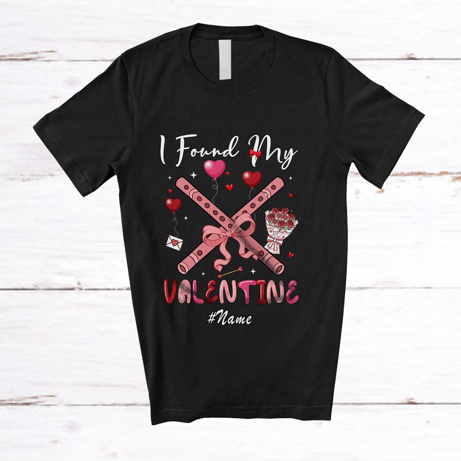 Personalized Custom Name I Found My Valentine; Joyful Flute Musical Instruments Player Groovy T-Shirt