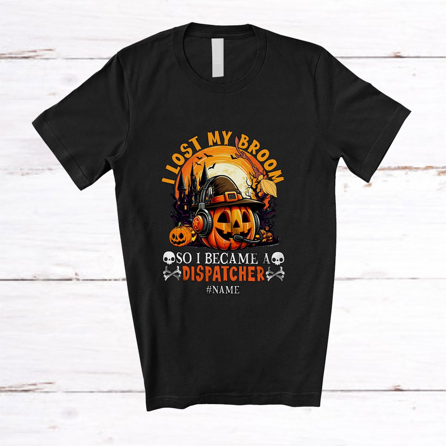 Personalized Custom Name I Lost My Broom Dispatcher; Scary Halloween Moon Jobs Witch T-Shirt