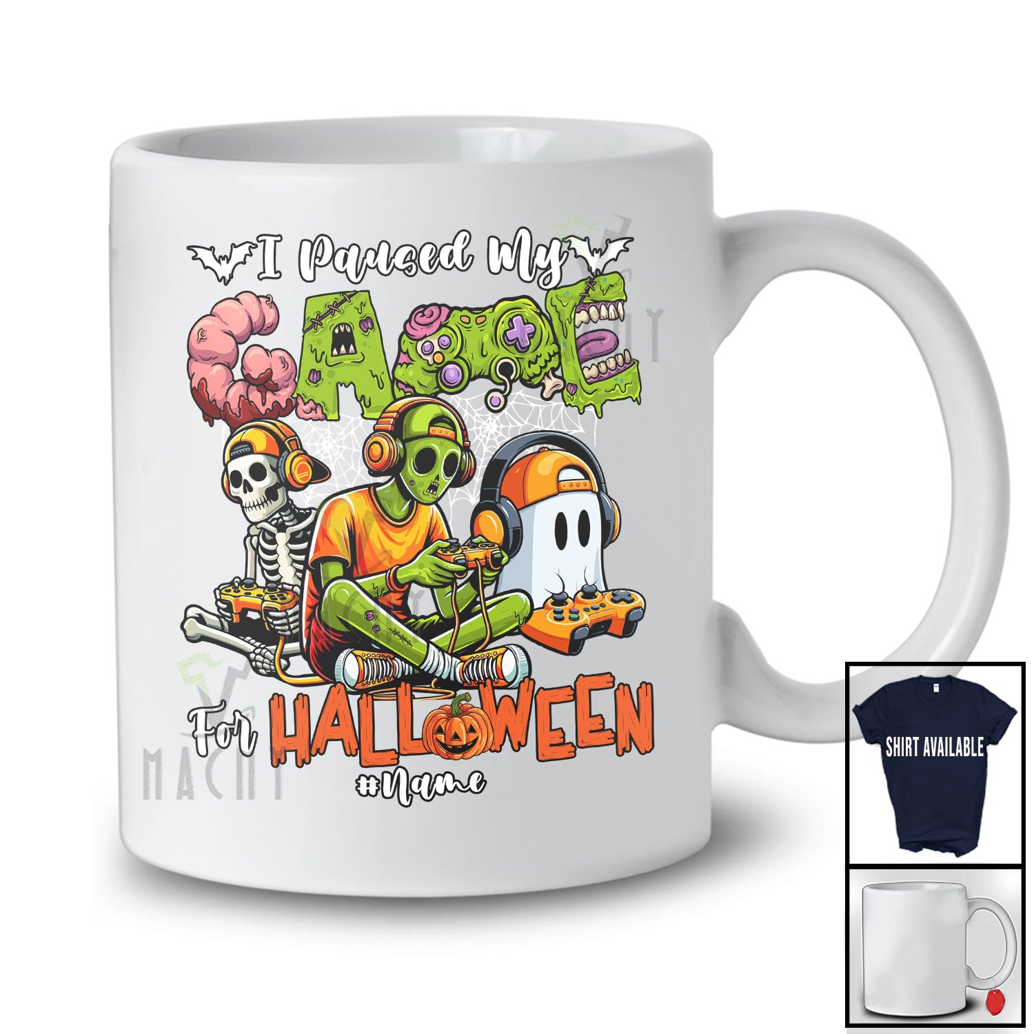 • Personalized Custom Name I Paused My Game For Halloween; Scary Zombies Ghost Gaming Gamer T-Shirt. This cotton t-shirt is a durable staple product with a classic fit. One of the most popular items, it has a relaxed style made for everyday and casual wear.