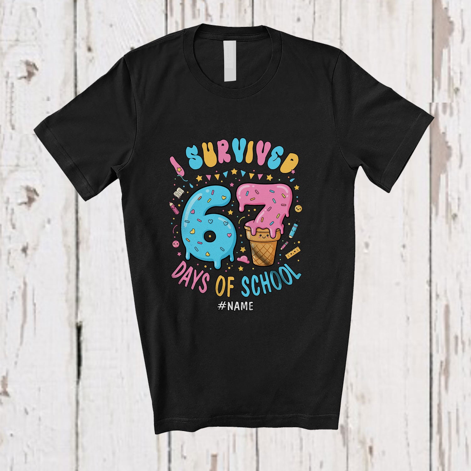 The Personalized Custom Name I Survived 67 Days Of School; Humorous Six Seven; Students Teacher T-Shirt is the yin, to your yang. You've found what you're looking for.