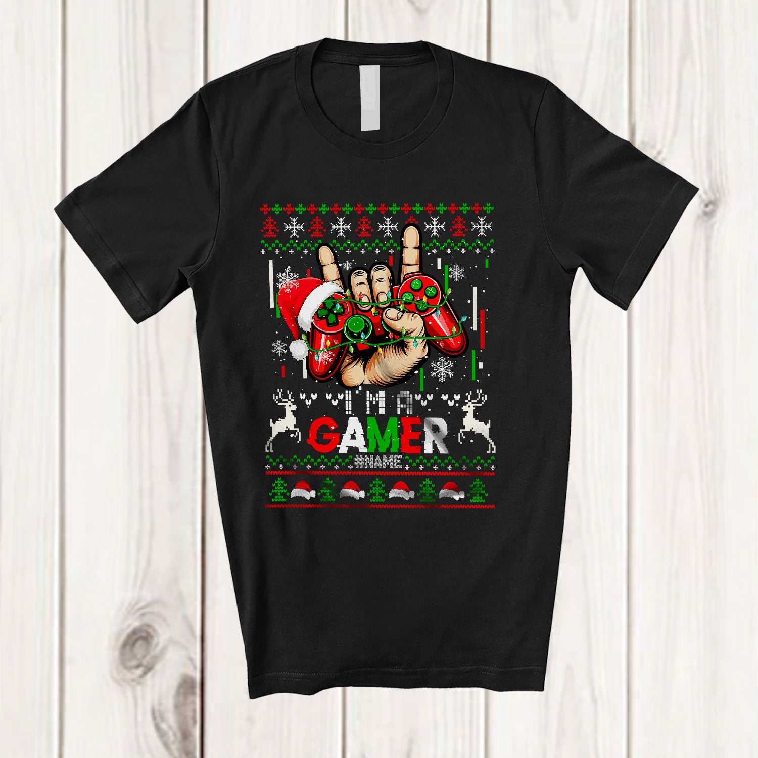 Personalized Custom Name I'm A Gamer; Wonderful Christmas Sweater Video Games Controller; Gaming T-Shirt. This cotton t-shirt is a durable staple product with a classic fit. One of the most popular items, it has a relaxed style made for everyday and casual wear.