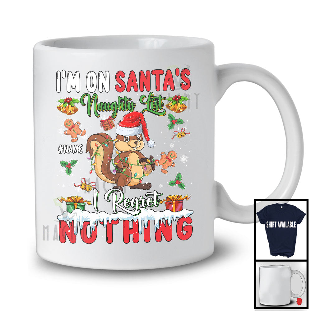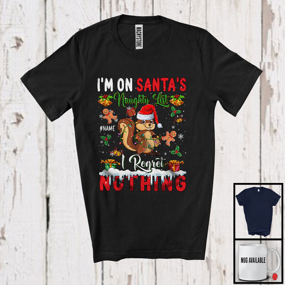 Personalized Custom Name I'm On Santa's Naughty List, Sarcastic Christmas Squirrel, Family X-mas T-Shirt