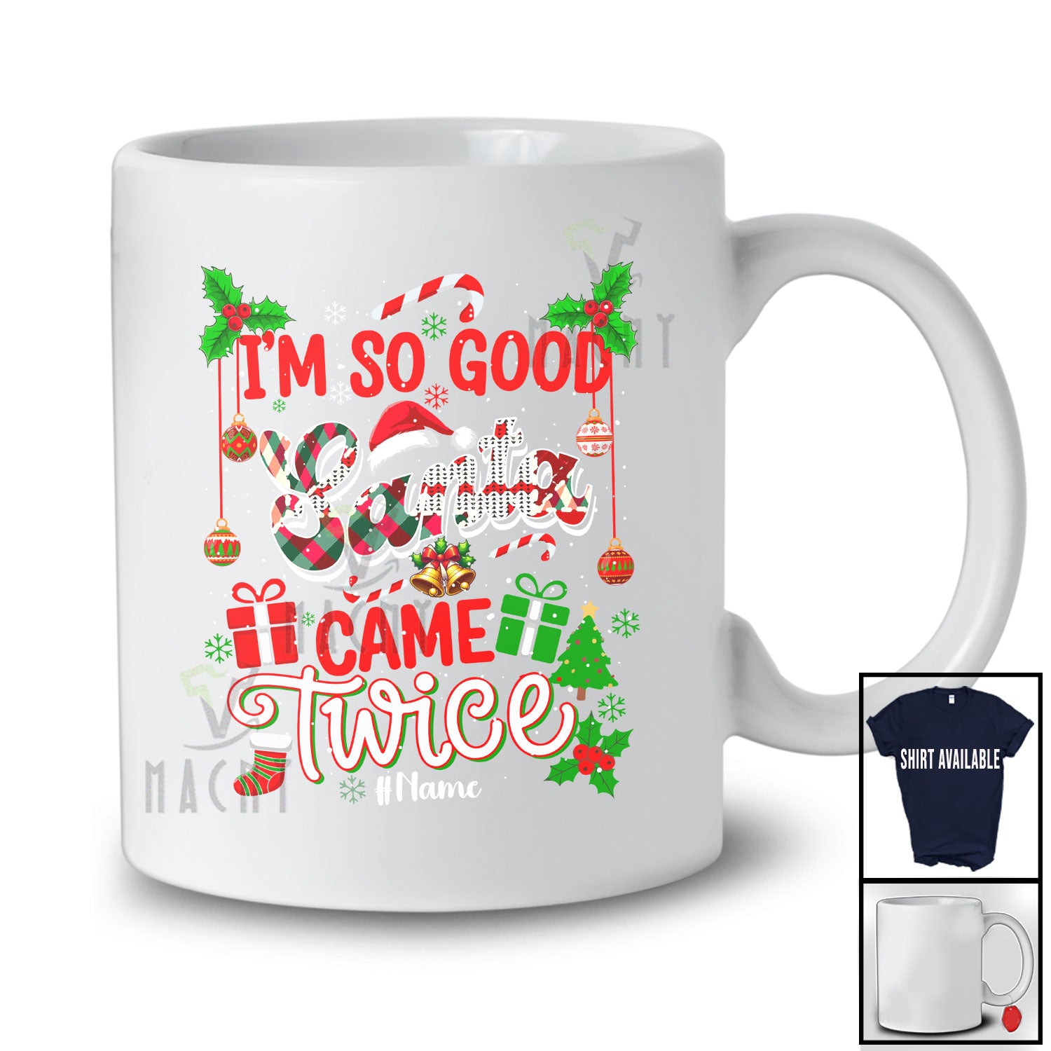 This Personalized Custom Name I'm So Good Santa Came Twice; Humorous Plaid Christmas Family T-Shirt is great idea gift for your family, friends in this birthday, christmas, mother's day, father's day, patrick's day or any holiday.