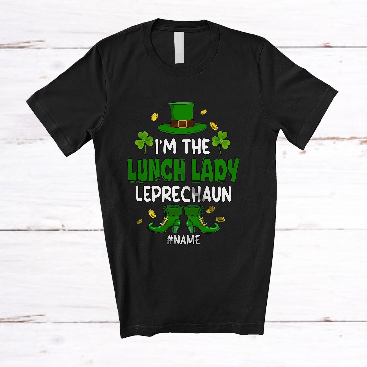 • Personalized Custom Name I'm The Lunch Lady Leprechaun; Lovely St. Patrick's Day Shamrocks T-Shirt. This cotton t-shirt is a durable staple product with a classic fit. One of the most popular items, it has a relaxed style made for everyday and casual wear.