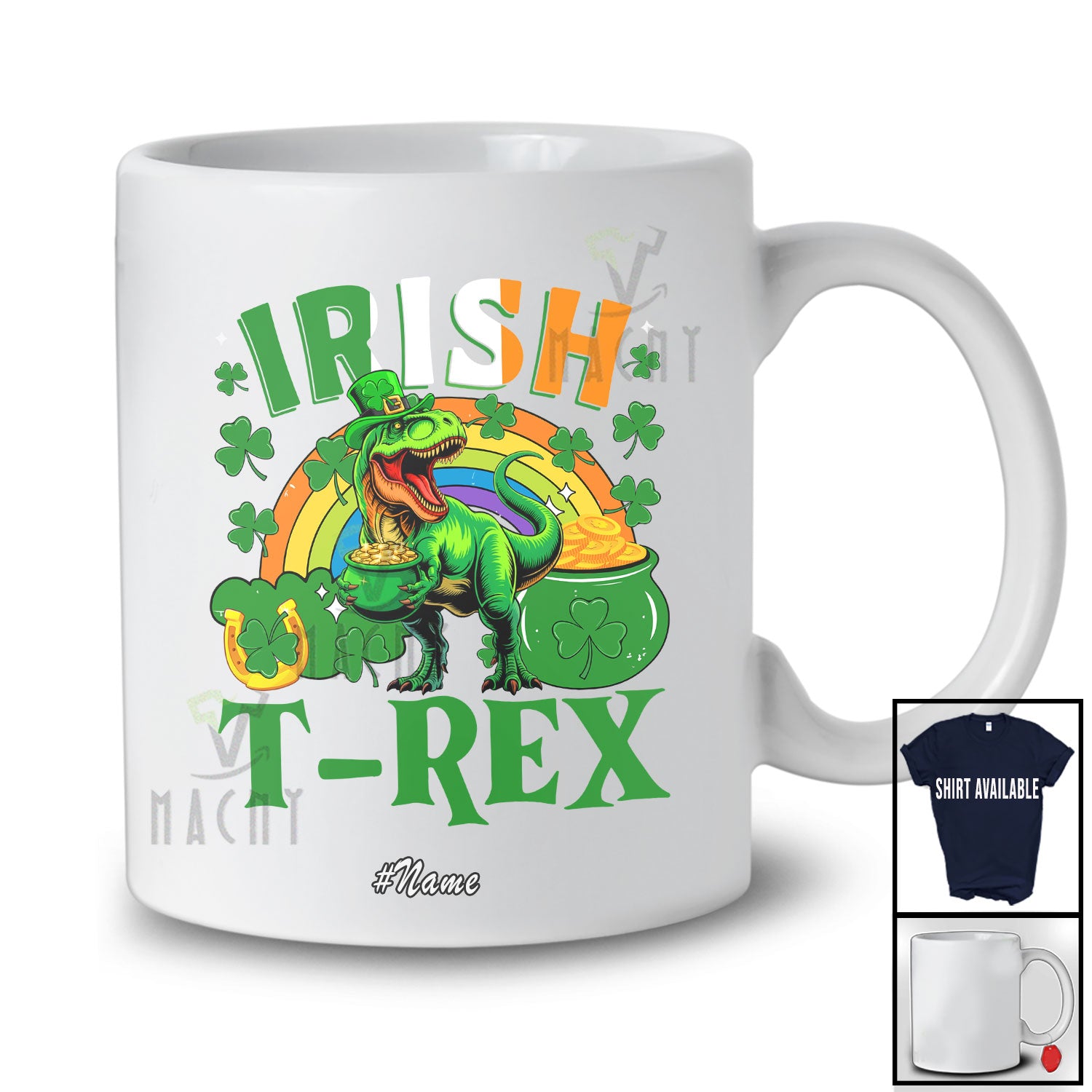 The Personalized Custom Name Irish T-Rex; Amazing St. Patrick's Day Girls Rainbow; Lucky Shamrock T-Shirt is far and away, one of our most popular items. People can't seem to get enough of it.