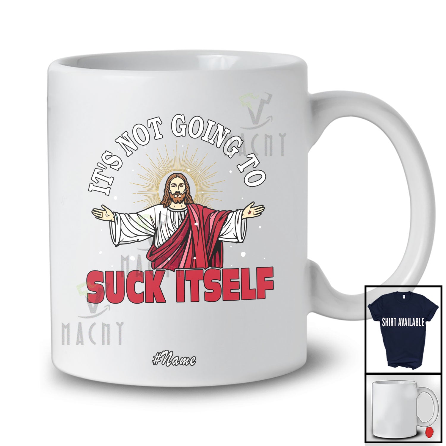 Life is too short to live without the Personalized Custom Name It's Not Going To Suck Itself; Humorous Christmas Jesus Family T-Shirt. Be happy. Be Content. Be Satisfied.