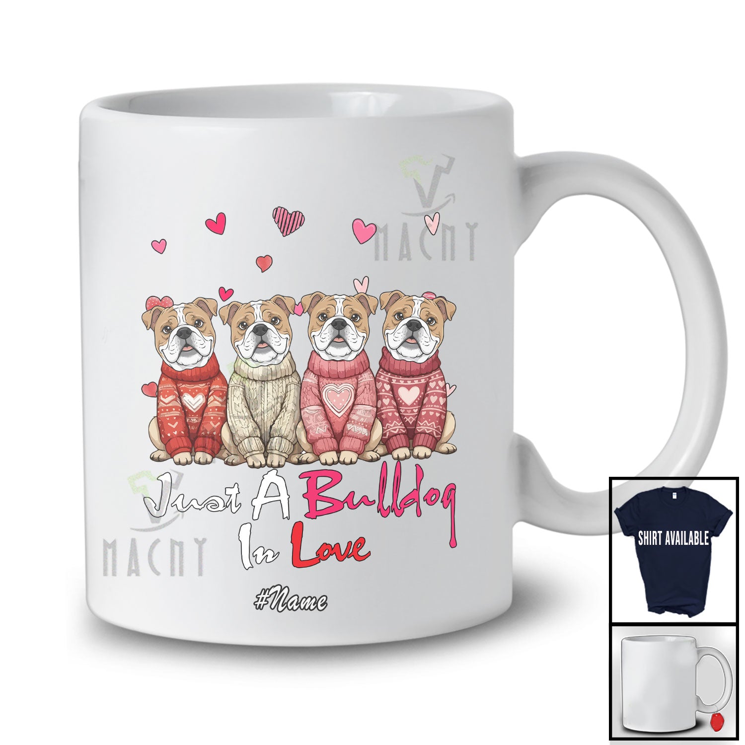 This Personalized Custom Name Just A Bulldog In Love; Lovely Valentine Hearts Family T-Shirt is great idea gift for your family, friends in this birthday, christmas, mother's day, father's day, patrick's day or any holiday.