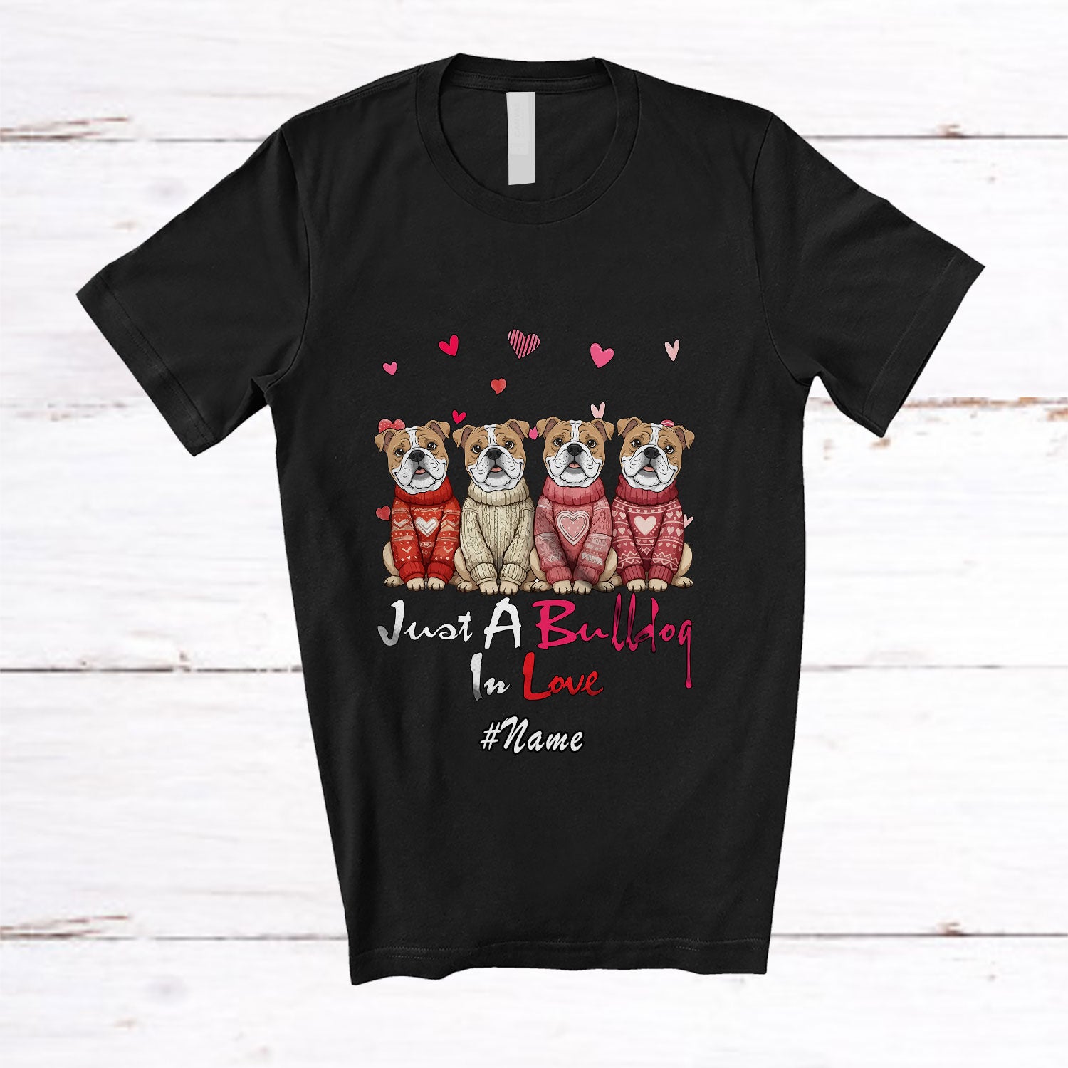 Personalized Custom Name Just A Bulldog In Love; Lovely Valentine Hearts Family T-Shirt