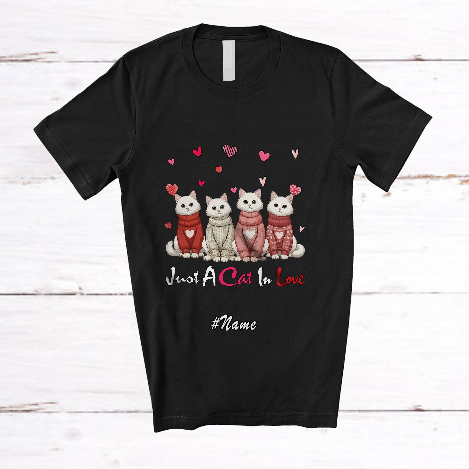 Personalized Custom Name Just A Cat In Love; Lovely Valentine Hearts Cat Owner Lover T-Shirt