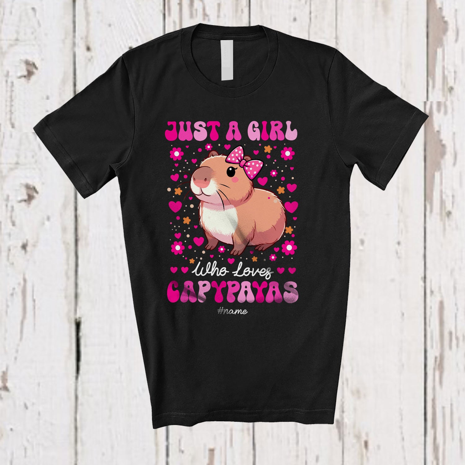 This Personalized Custom Name Just A Girl Who Loves Capybaras; Amusing Flower Floral Capybara T-Shirt is great idea gift for your family, friends in this birthday, christmas, mother's day, father's day, patrick's day or any holiday.