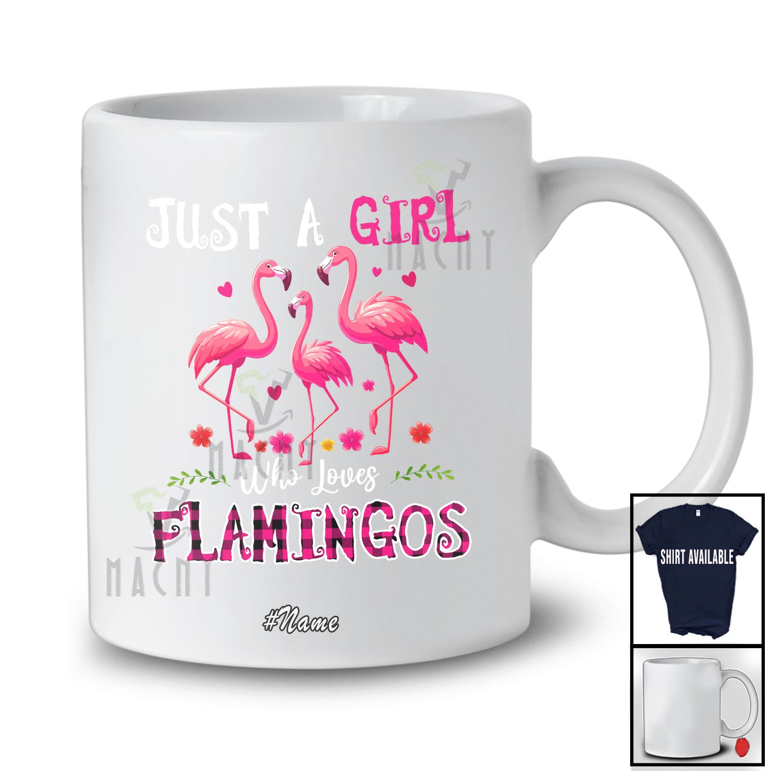 • Personalized Custom Name Just A Girl Who Loves Flamingos; Adorable Plaid Flowers Animal Lover T-Shirt. This cotton t-shirt is a durable staple product with a classic fit. One of the most popular items, it has a relaxed style made for everyday and casual wear.