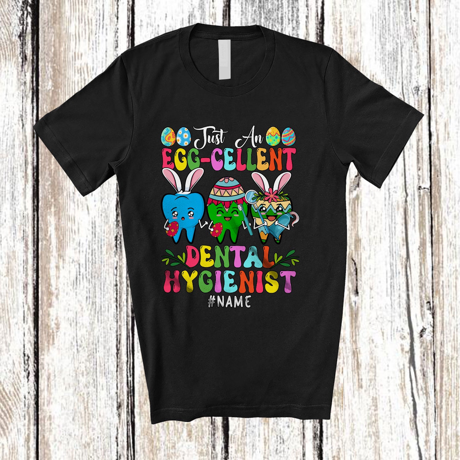 Personalized Custom Name Just An Egg-cellent Dental Hygienist; Joyful Easter Excellent 3 Bunnies Teeth T-Shirt