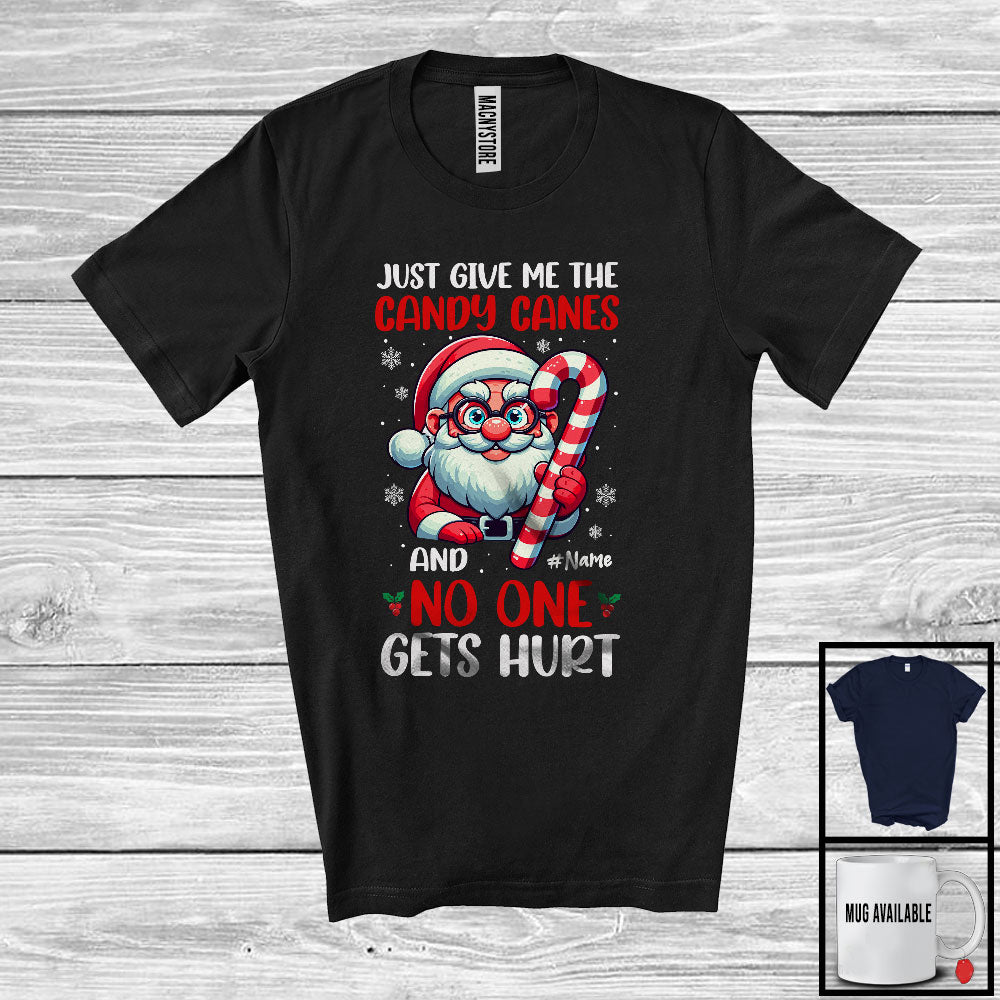 new MacnyStore - Personalized Custom Name Just Give Me The Candy Canes; Lovely Christmas Santa; Family T-Shirt – Macnystore