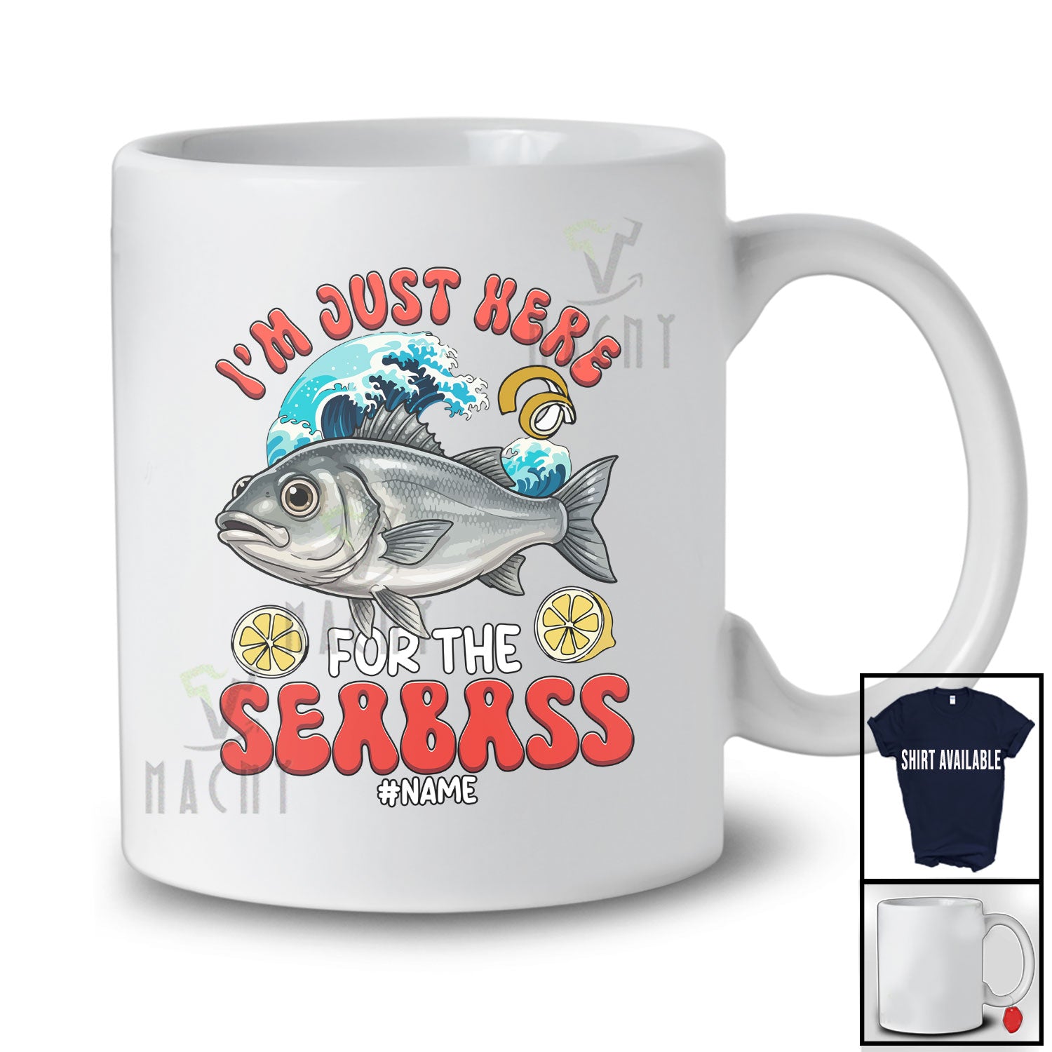 The Personalized Custom Name Just Here For The Seabass; Humorous Seafood Boil Party Fishing Food T-Shirt is evocative, to say the least, but that's why you're drawn to it in the first place.