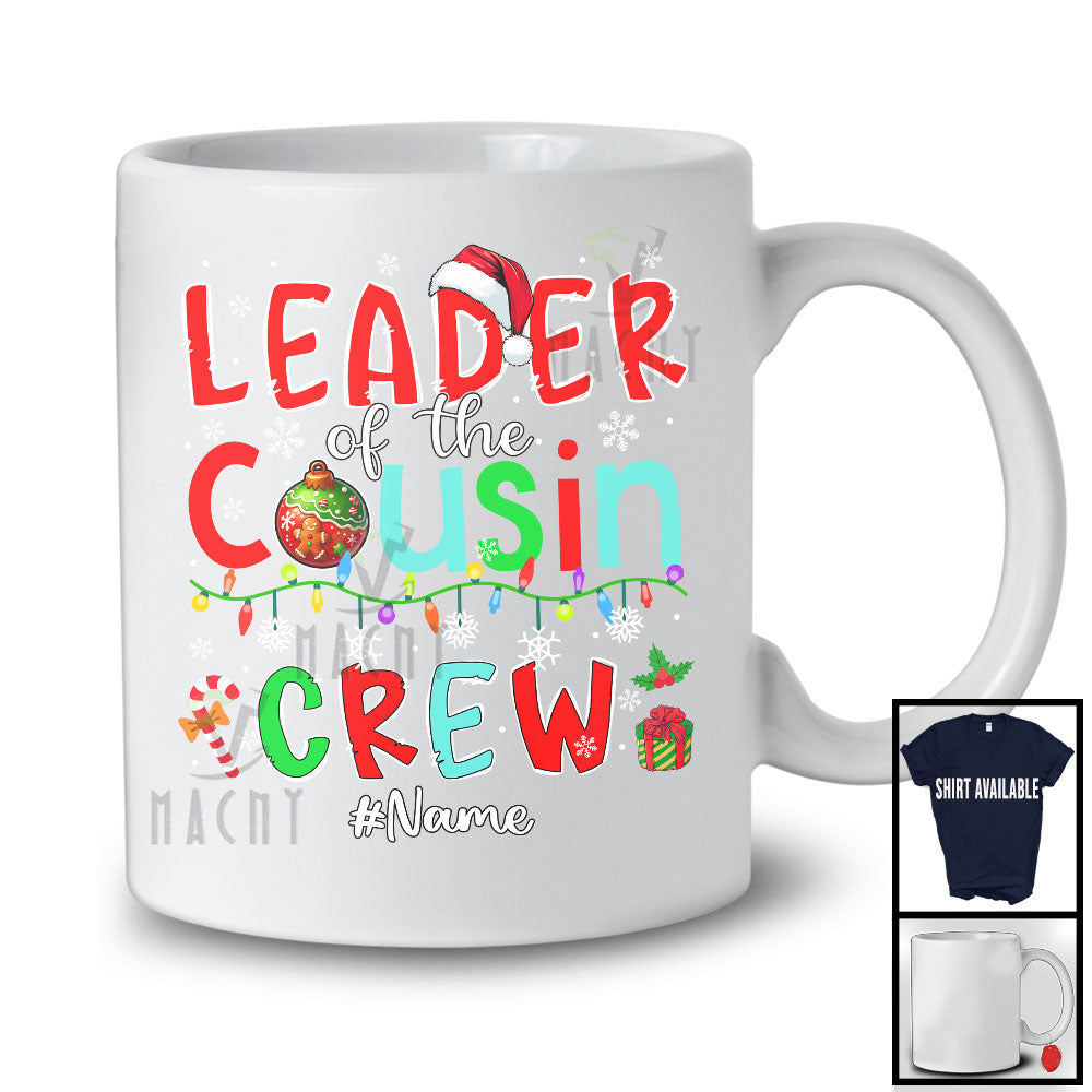 • Personalized Custom Name Leader Of The Cousin Crew; Amazing Christmas Lights Santa; Family Group T-Shirt. This cotton t-shirt is a durable staple product with a classic fit. One of the most popular items, it has a relaxed style made for everyday and casual wear.