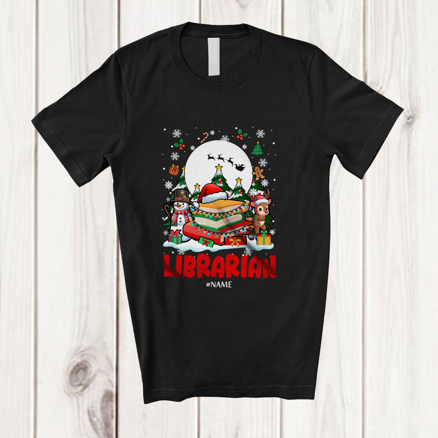 Personalized Custom Name Librarian; Joyful Christmas Reindeer Snowman; Proud Jobs Family T-Shirt