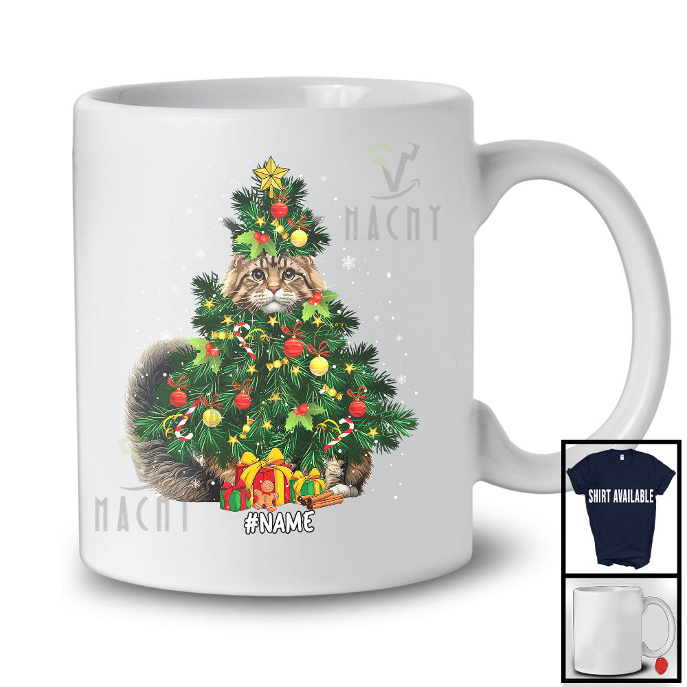 new MacnyStore - Personalized Custom Name Maine Coon Cat Christmas Tree Cosplay; Joyful Family Group; Snowing T-Shirt – Macnystore
