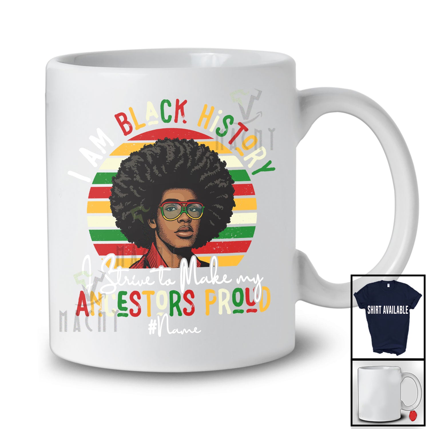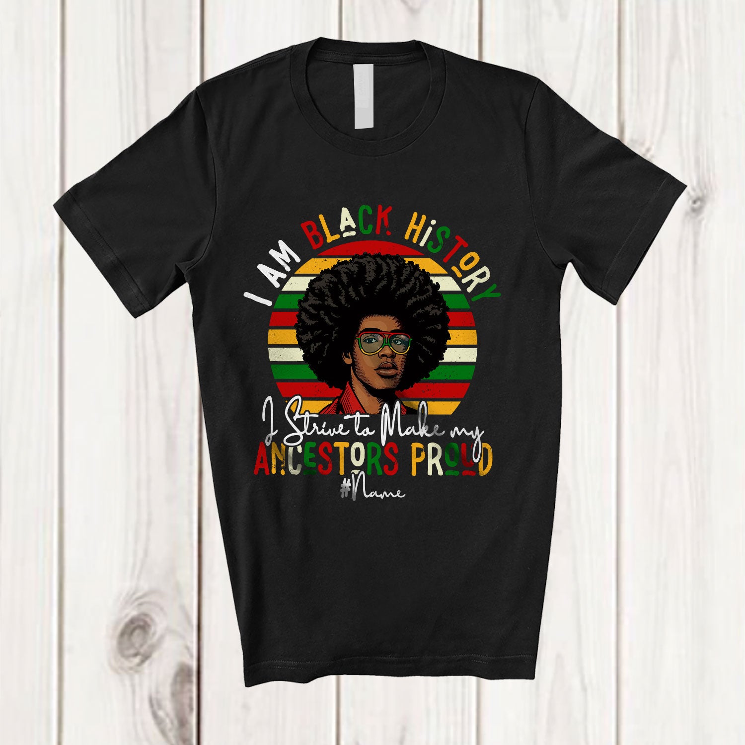 • Personalized Custom Name Make My Ancestors Proud; Lovely Black History Month Men; Retro T-Shirt. This cotton t-shirt is a durable staple product with a classic fit. One of the most popular items, it has a relaxed style made for everyday and casual wear.