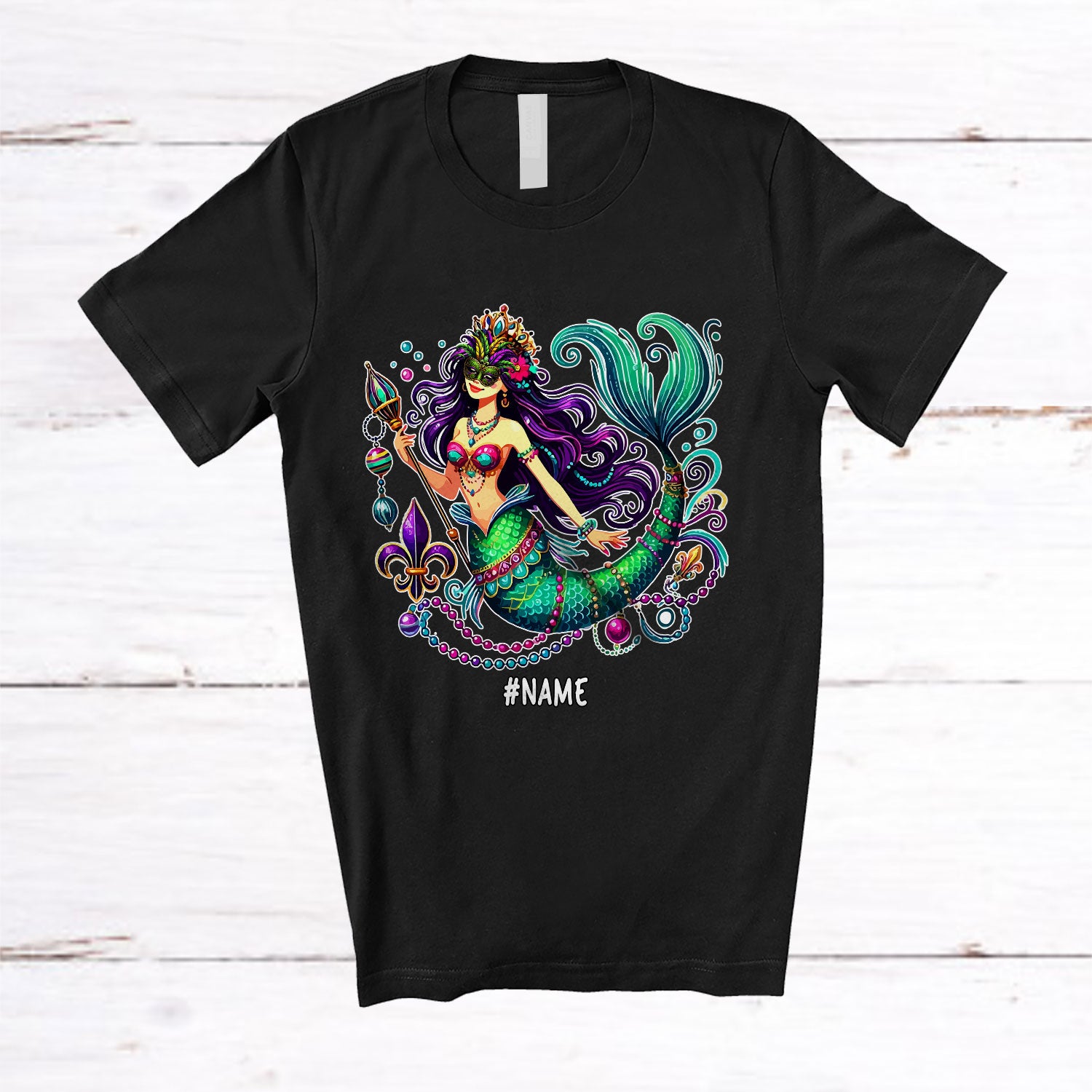 • Personalized Custom Name Mermaid Mardi Gras; Lovely Mermaid Parade Gras Cosplay; Family T-Shirt. This cotton t-shirt is a durable staple product with a classic fit. One of the most popular items, it has a relaxed style made for everyday and casual wear.