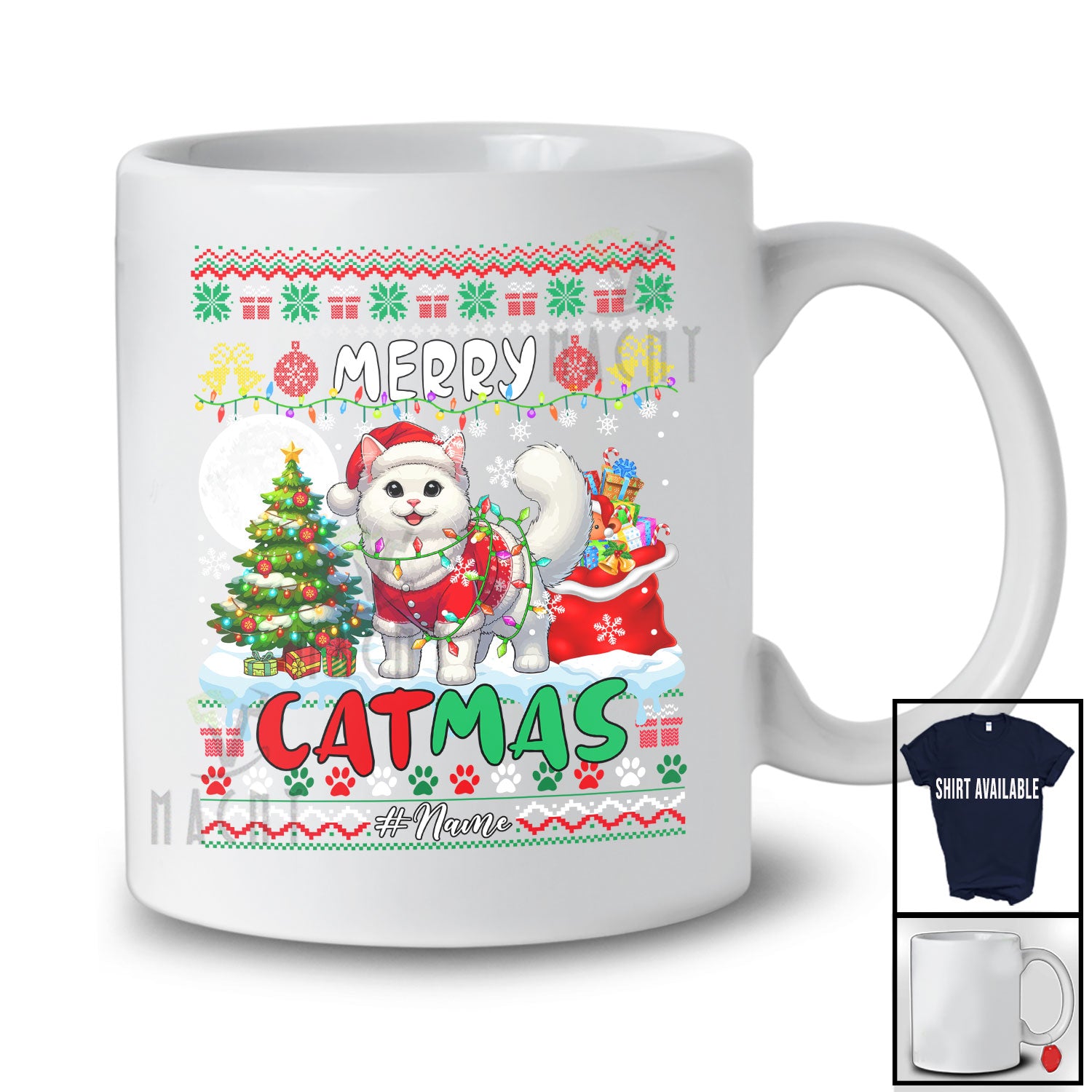 Personalized Custom Name Merry Catmas; Amazing Christmas Lights Sweater Cat Santa; Family T-Shirt. This cotton t-shirt is a durable staple product with a classic fit. One of the most popular items, it has a relaxed style made for everyday and casual wear.
