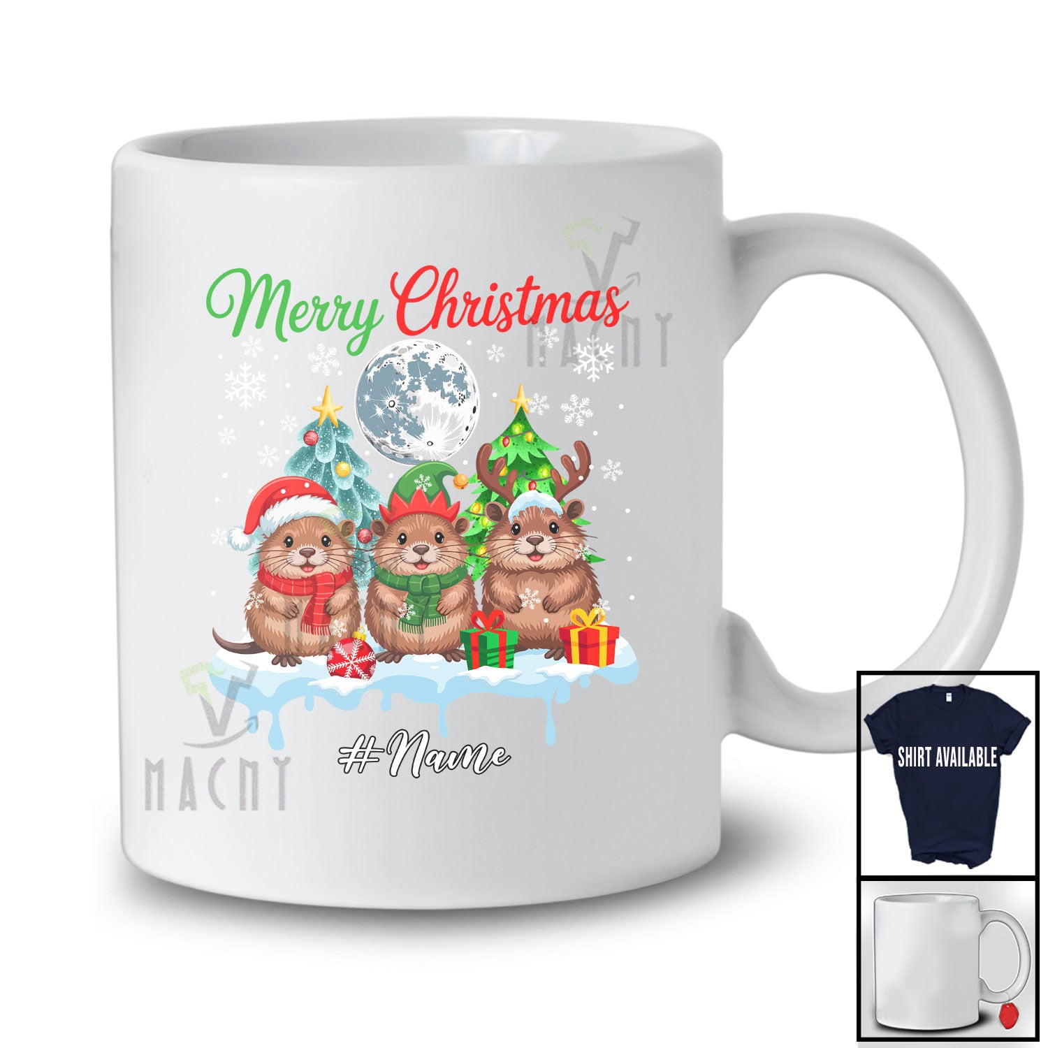 Personalized Custom Name Merry Christmas; Lovely Three Santa Elf Muskrat Rodent Animal T-Shirt