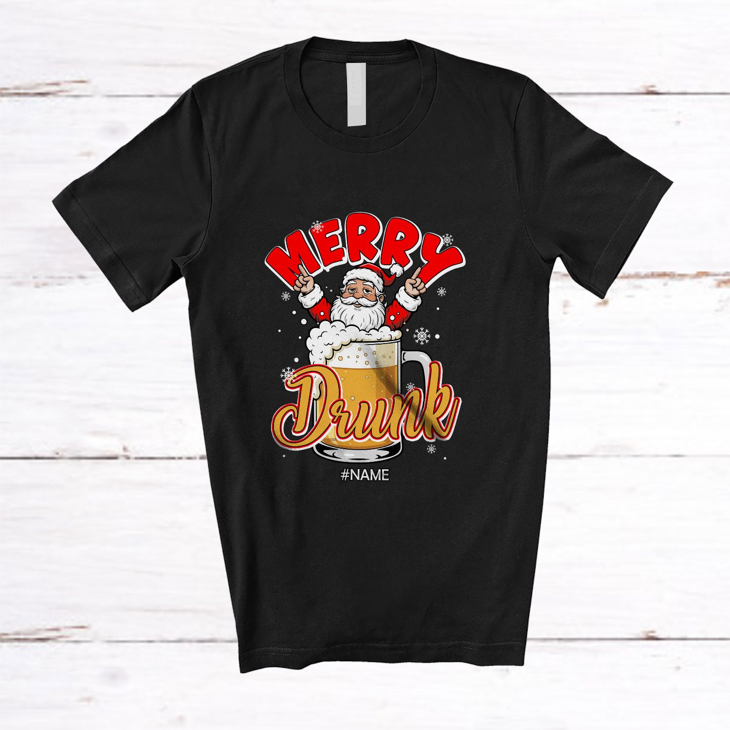 Personalized Custom Name Merry Drunk; Amusing Christmas Santa In Beer Glass; Drinking T-Shirt